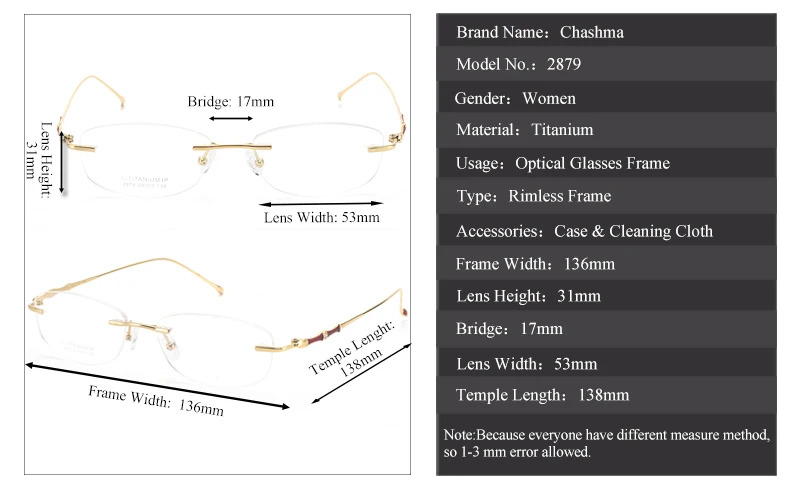 Женские очки Chashma без оправы, высококачественные оправы для очко...