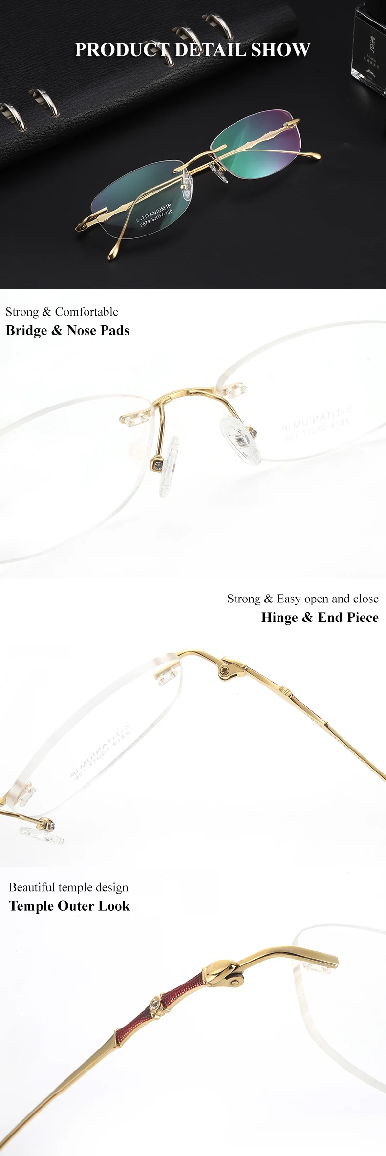 Женские очки без оправы, высококачественные очки, легкие очки из чистого титана, гибкие очки в оправе, модные очки