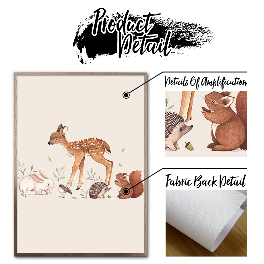 Лиса, олень, дневной медведь, лист, мультфильм, животные, настенная Картина на холсте, скандинавский плакат и оформление детской комнаты