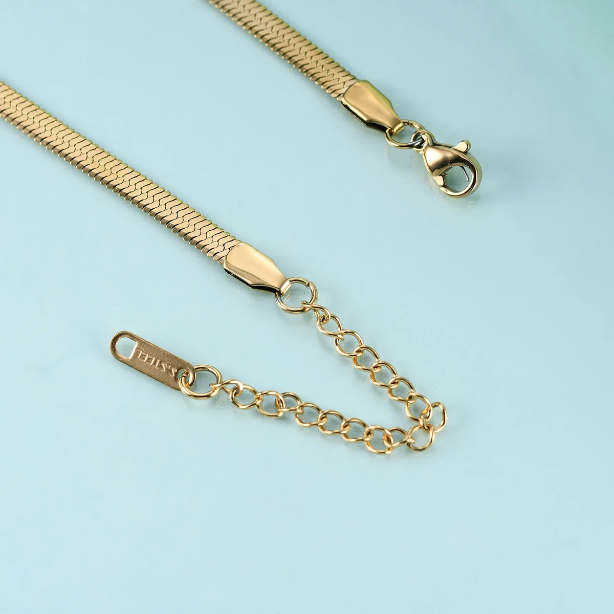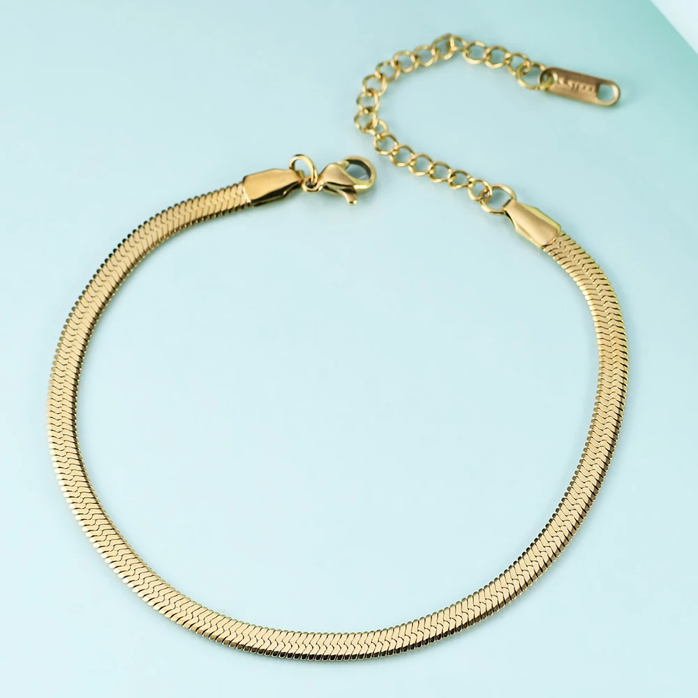 Элегантные плоские браслеты-цепочки со змеиным плетением для женщин и девушек золотистая металлическая Регулируемая цепочка в елочку Праздничная пляжная Женская бижутерия