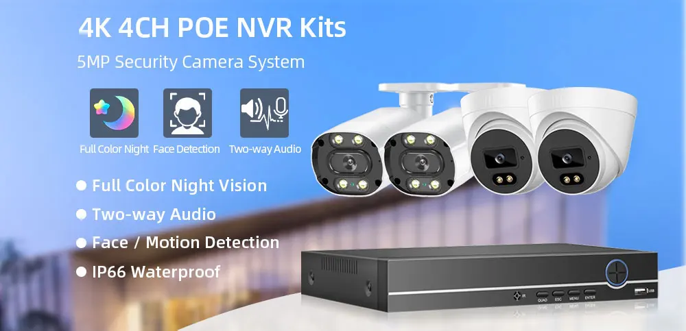 4CH 4K Домашняя безопасность NVR POE CCTV камера система Hi3516EV300 5MP двухстороннее аудио наружное цветное ночное видение комплект видеонаблюдения