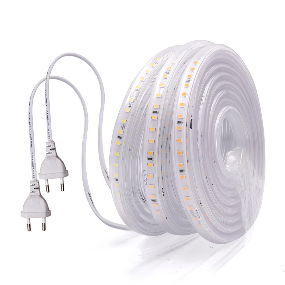 220V 2835 Светодиодные ленты высокой яркости Безопасность 120 светодиодовM гибкая светодиодная лента Водонепроницаемый IP68 светодиодный светильник в полоску со штепсельной вилкой европейского стандарта