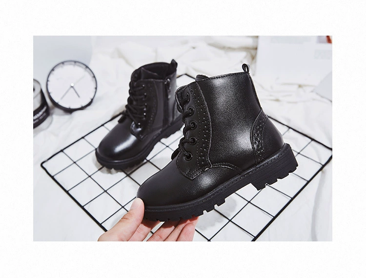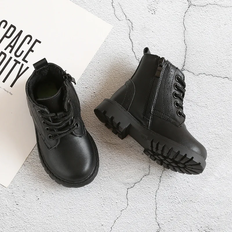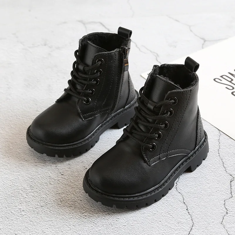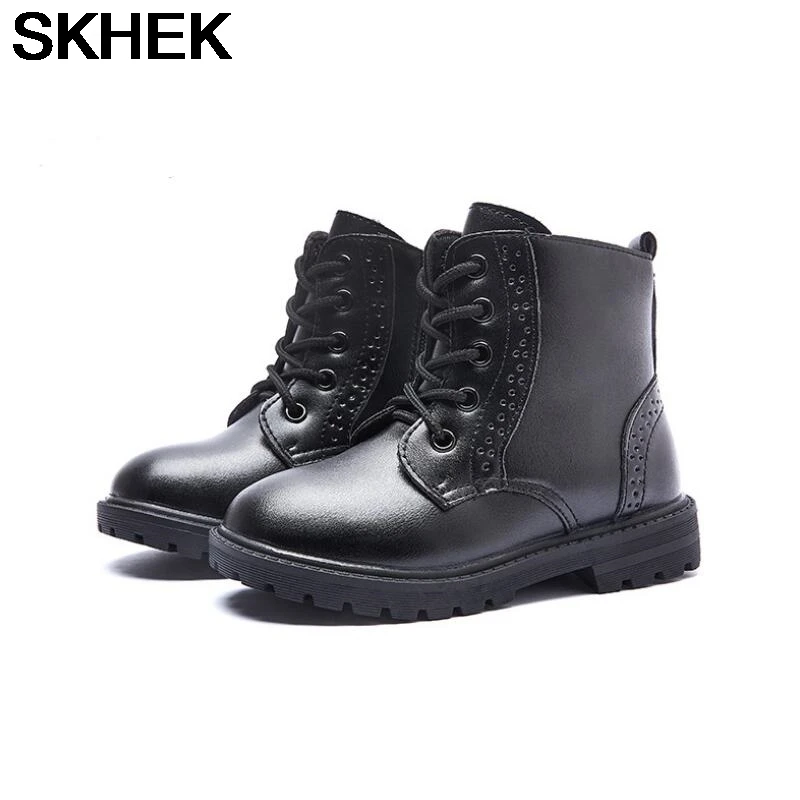 Зимние ботинки SKHEK для маленьких девочек 2021 года, Детские Зимние Ботинки Martin, плюшевая школьная обувь для мальчиков с предупредительным принтом, Детские ботильоны, нескользящая обувь