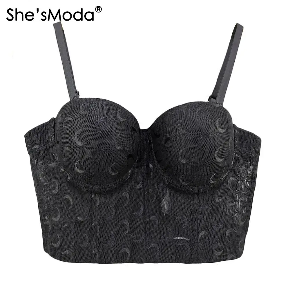 She'sModa сетчатый бюстье с принтом Луны пуш-ап Бралетт для ночного клуба женский бюстгальтер укороченный топ Майка корсет размера плюс