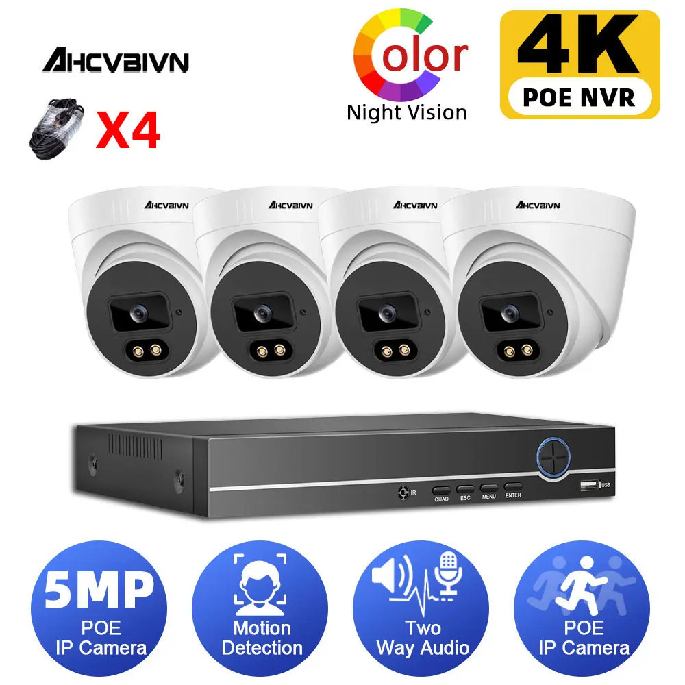 IP-камера видеонаблюдения H.265 POE, комплект уличной водонепроницаемой двухсторонней аудиокамеры видеонаблюдения 5 МП, система безопасности 4CH 4K POE NVR