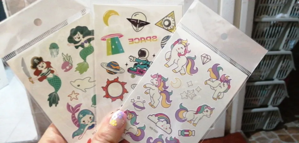 Добрый день! Татушечки замечательные.хорошо крепятся .яркие .в темноте очень ярко светятся..Ребенок в восторге.