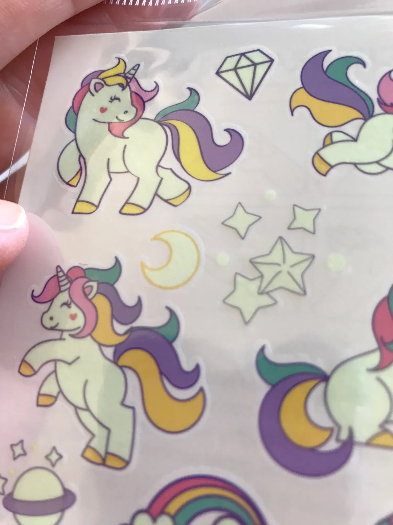 Наклейки действительно светятся в темноте. Очень классные. Дочка довольна. Были упакованы в герметичную упаковку. Наклеивать надо сначала мочите то место куда будите наклеивать, и потом накладываете наклейку