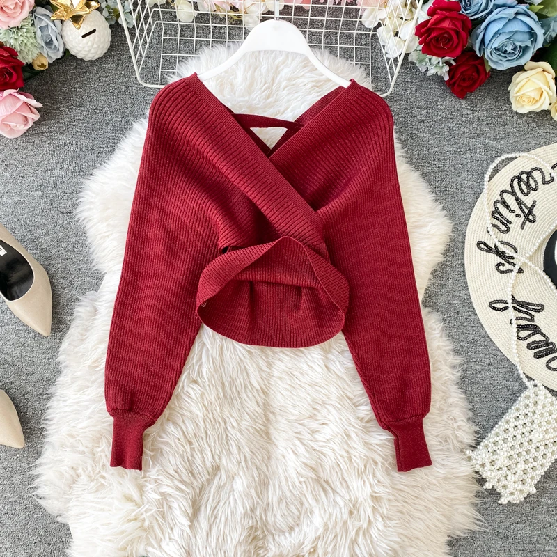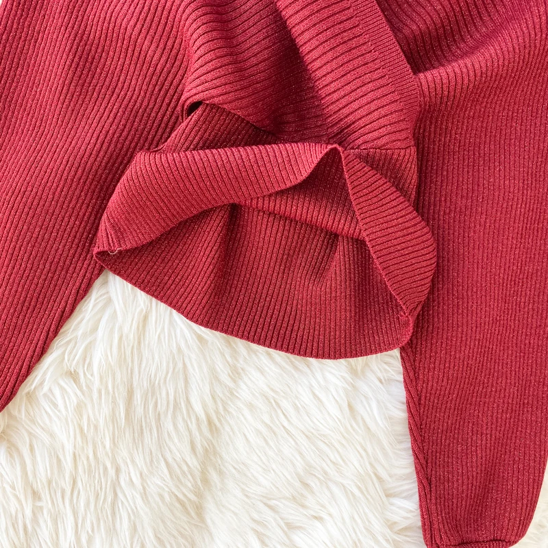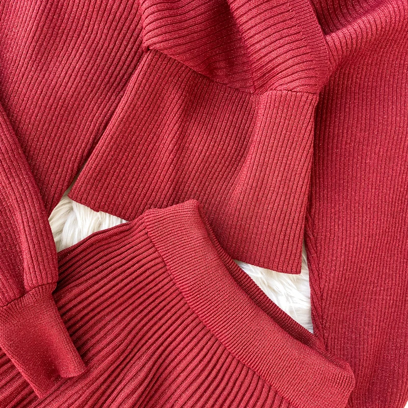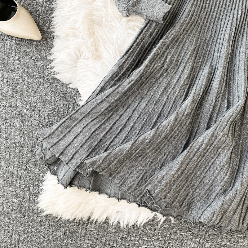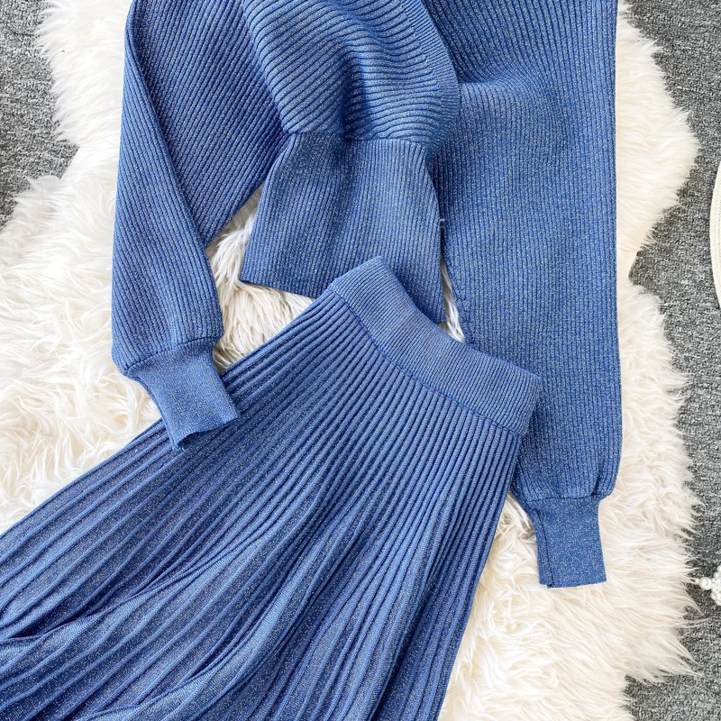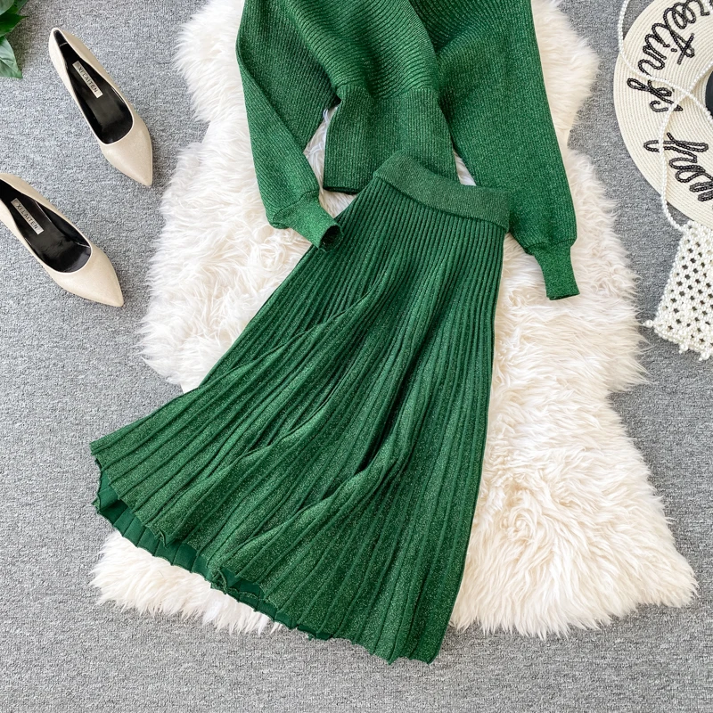 Croysier зимний костюм женский из двух частей, свитер топ с v-образным вырезом и плиссированная юбка миди, женские вязаный трикотажный костюм из 2 предметов, осенняя одежда, наряды для женщин трикотаж