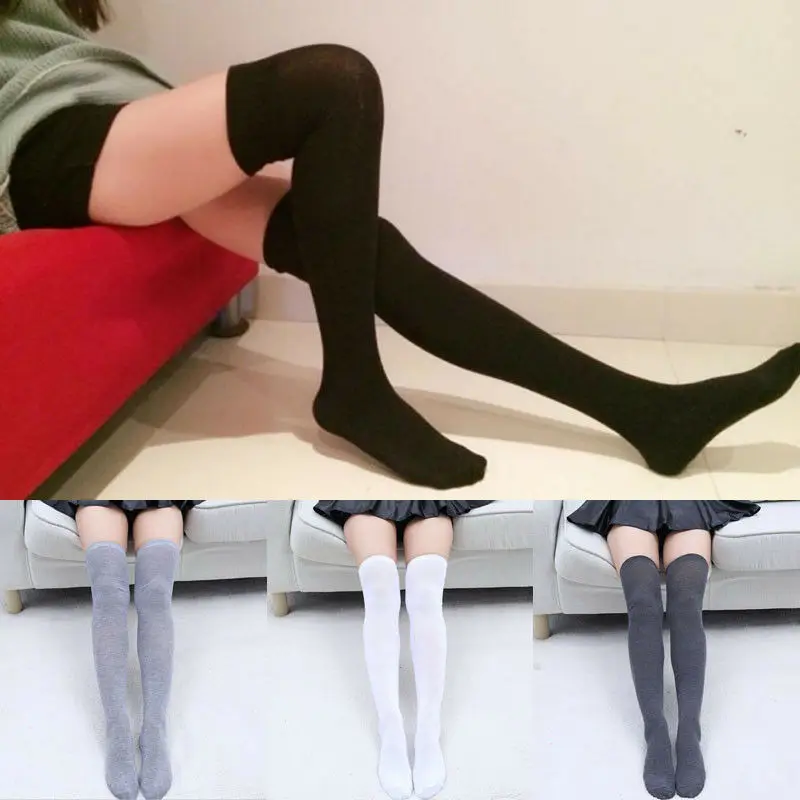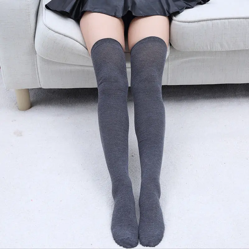 Модные теплые чулки для женщин и девочек, трикотажные хлопковые длинные чулки выше колена, колготки для танцев, однотонные чулки до бедра