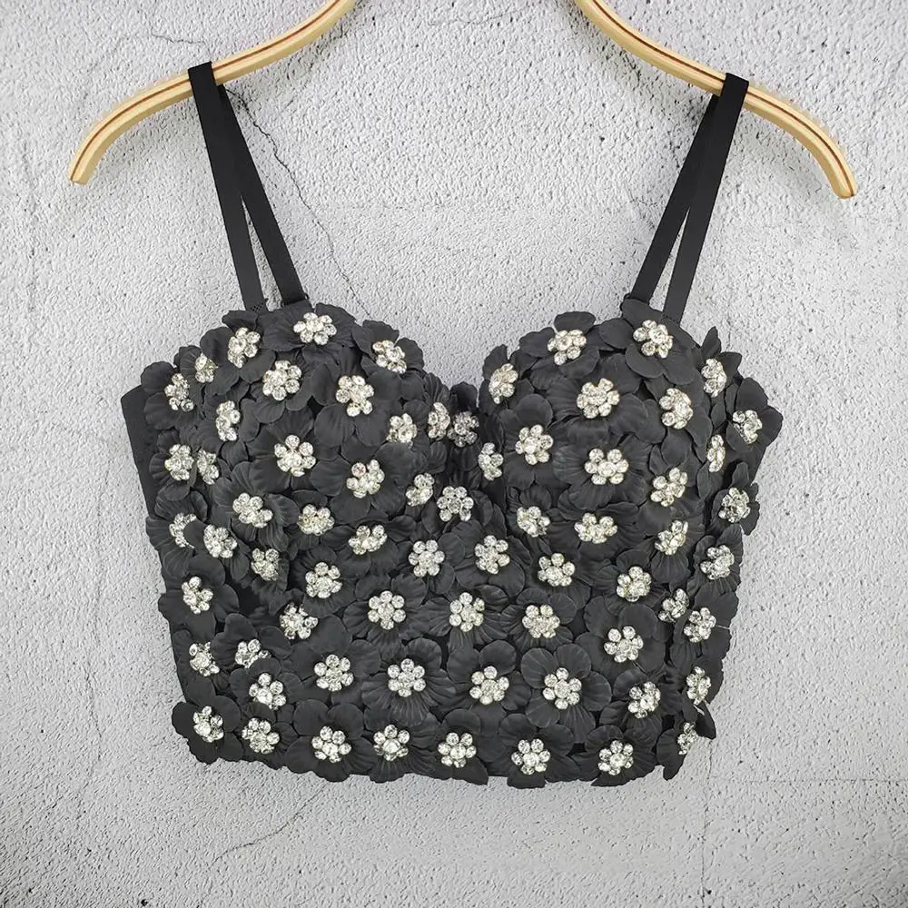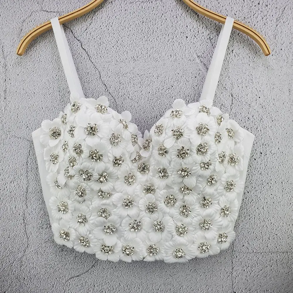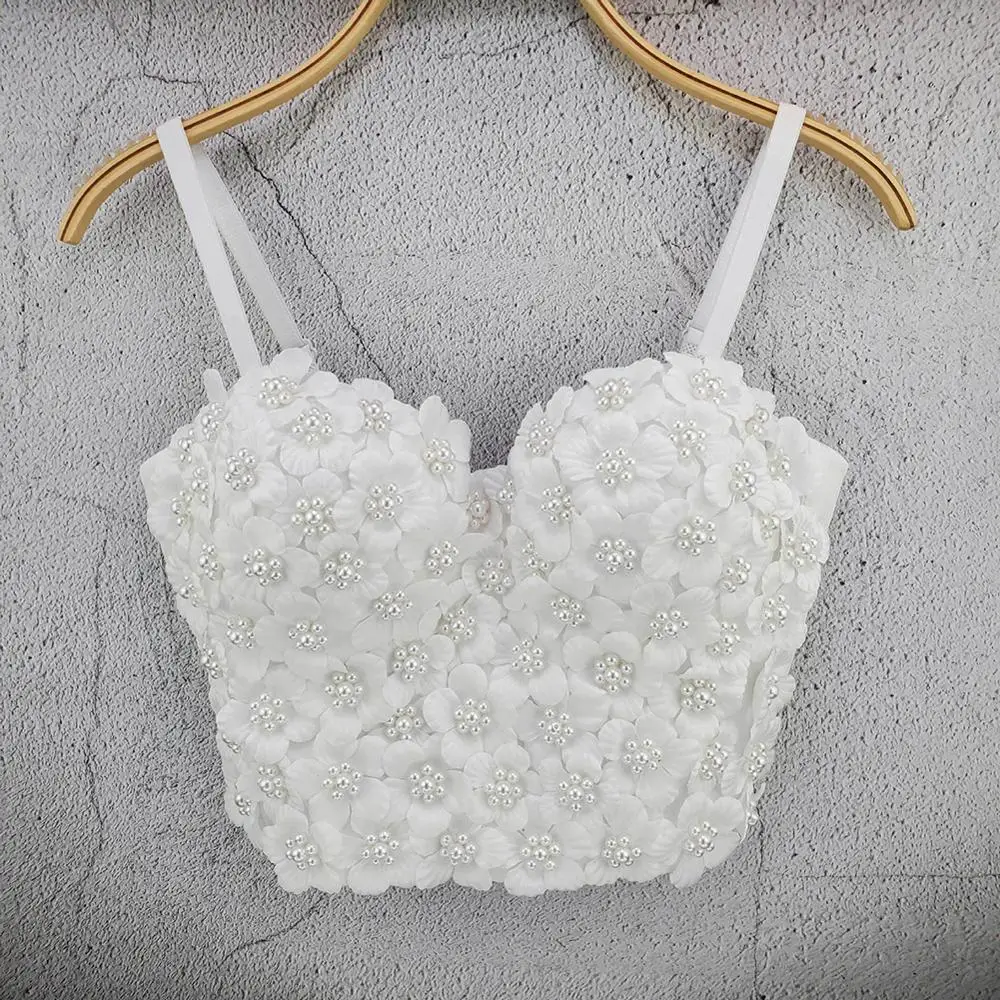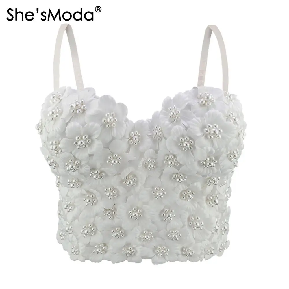 Женский бюстгальтер с аппликацией She'sModa 2020, с цветочным жемчугом, бюстье, бюстгальтер пуш-ап для ночного клуба, укороченный топ, корсет, размера плюс