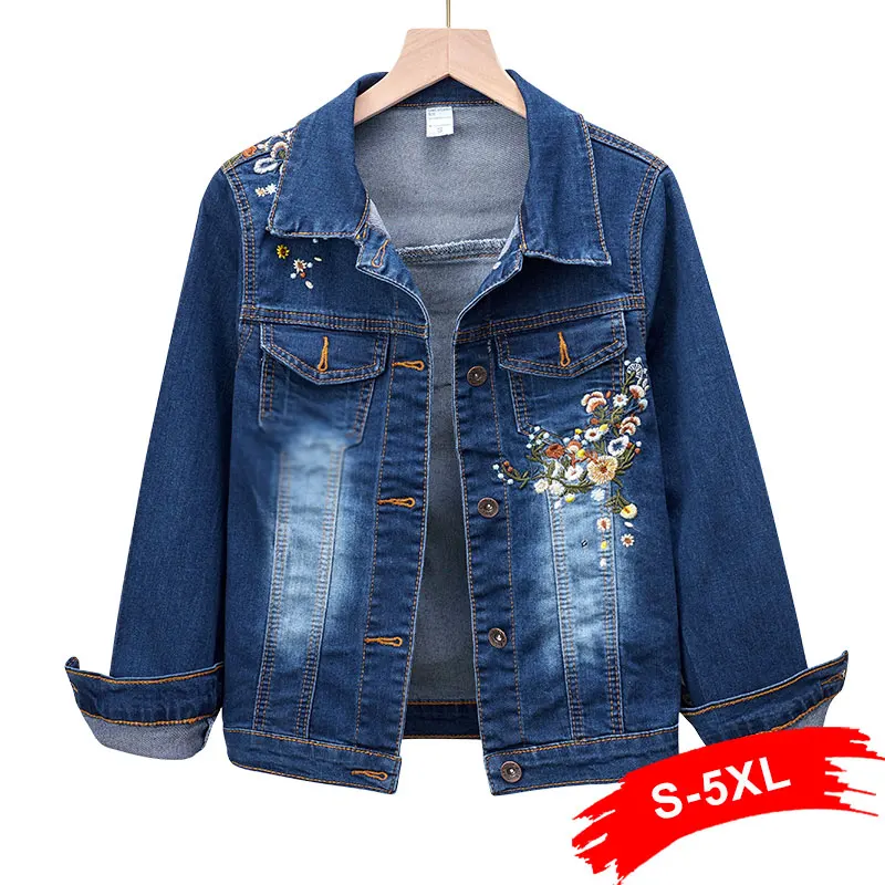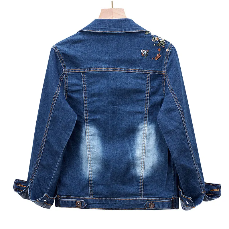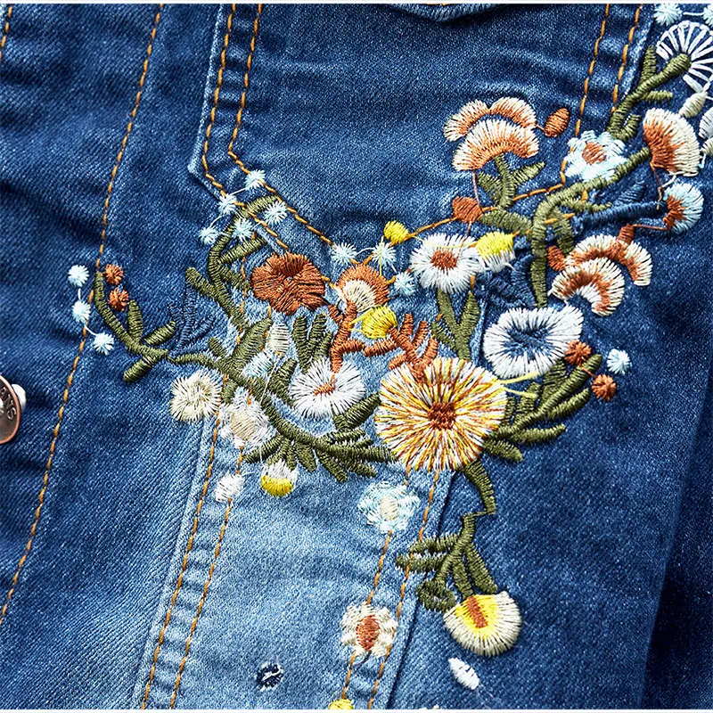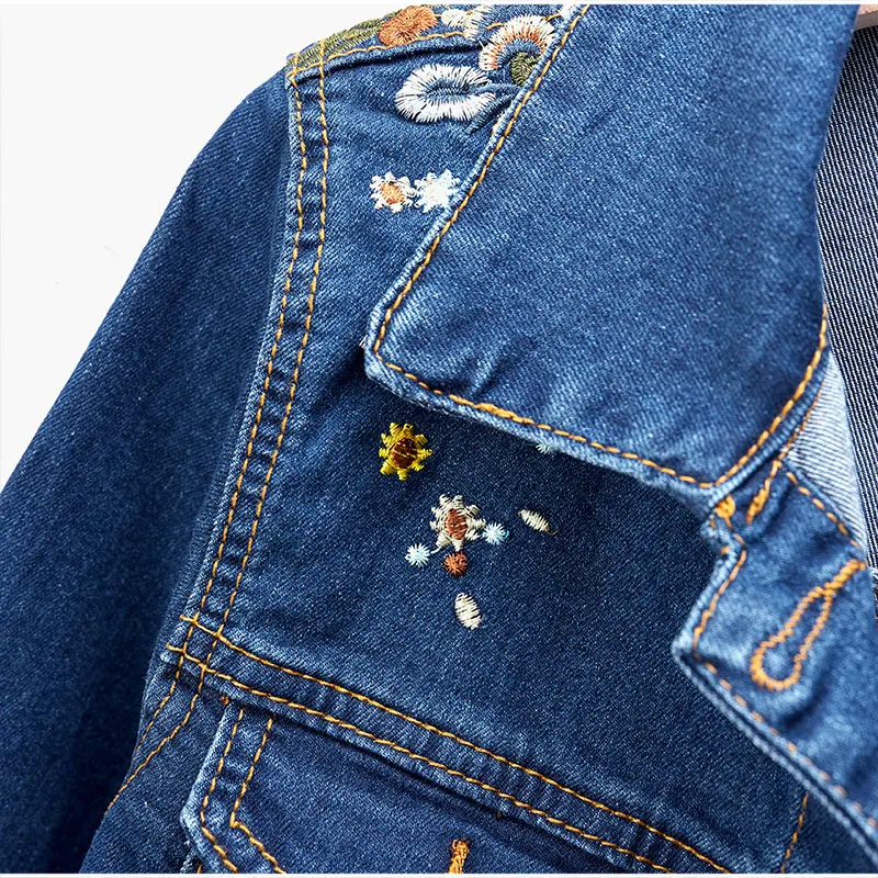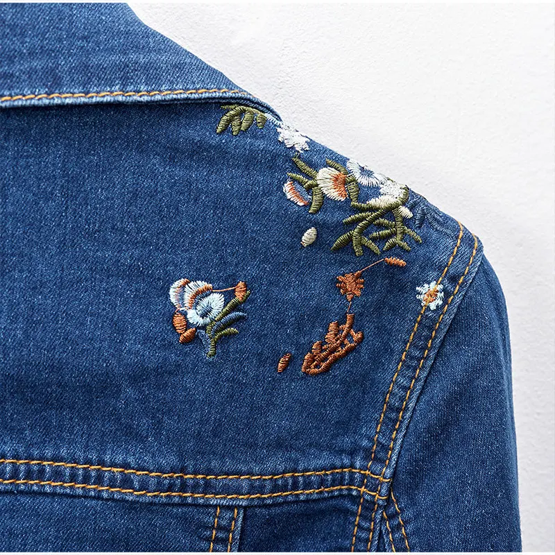 Куртка-бомбер джинсовая короткая с цветочной вышивкой