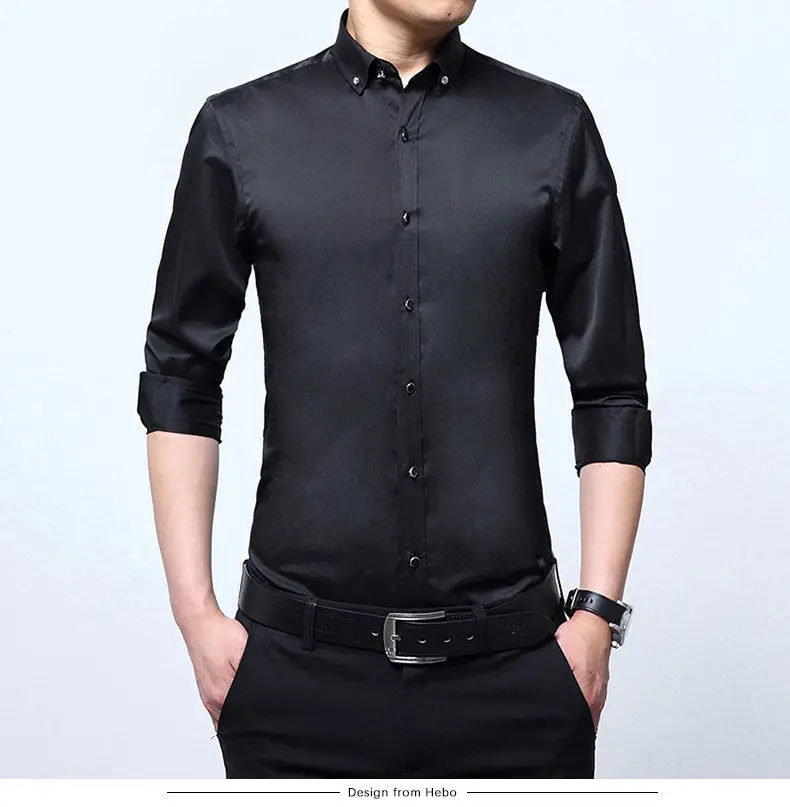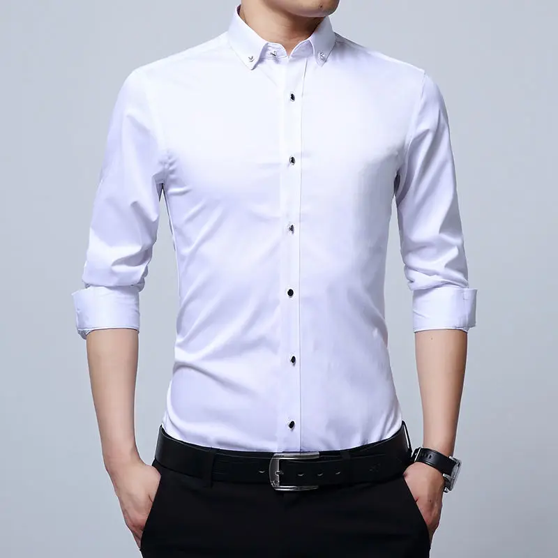 Мужские французские запонки рубашка новая мужская Однотонная одежда рубашка с длинным рукавом Повседневные мужские брендовые рубашки Slim Fit манжетой рубашки