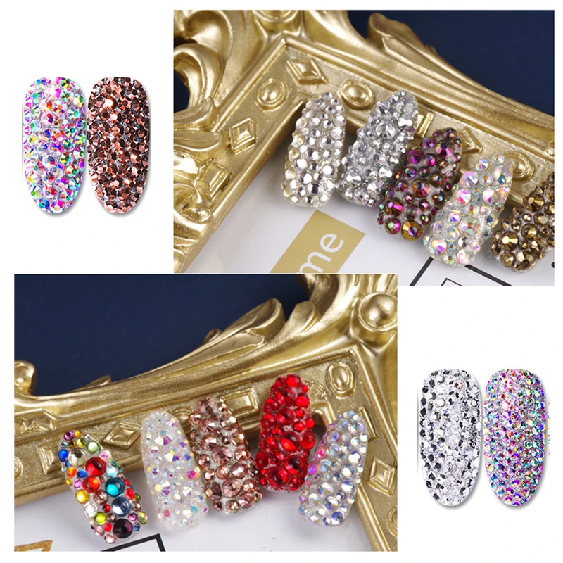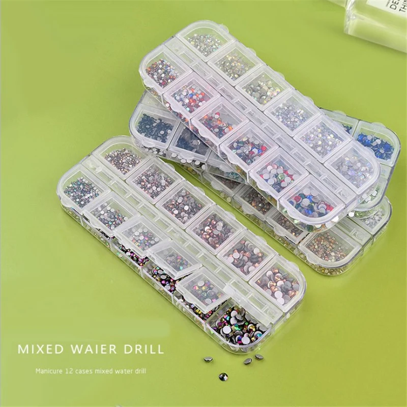 12 сетки с украшением в виде кристаллов для дизайна ногтей Стразы акриловый Фрезер для ногтей cо шлифовальными камни бусины заклепки с плоской задней частью с блестками советы 3D украшения для ногтей T0808