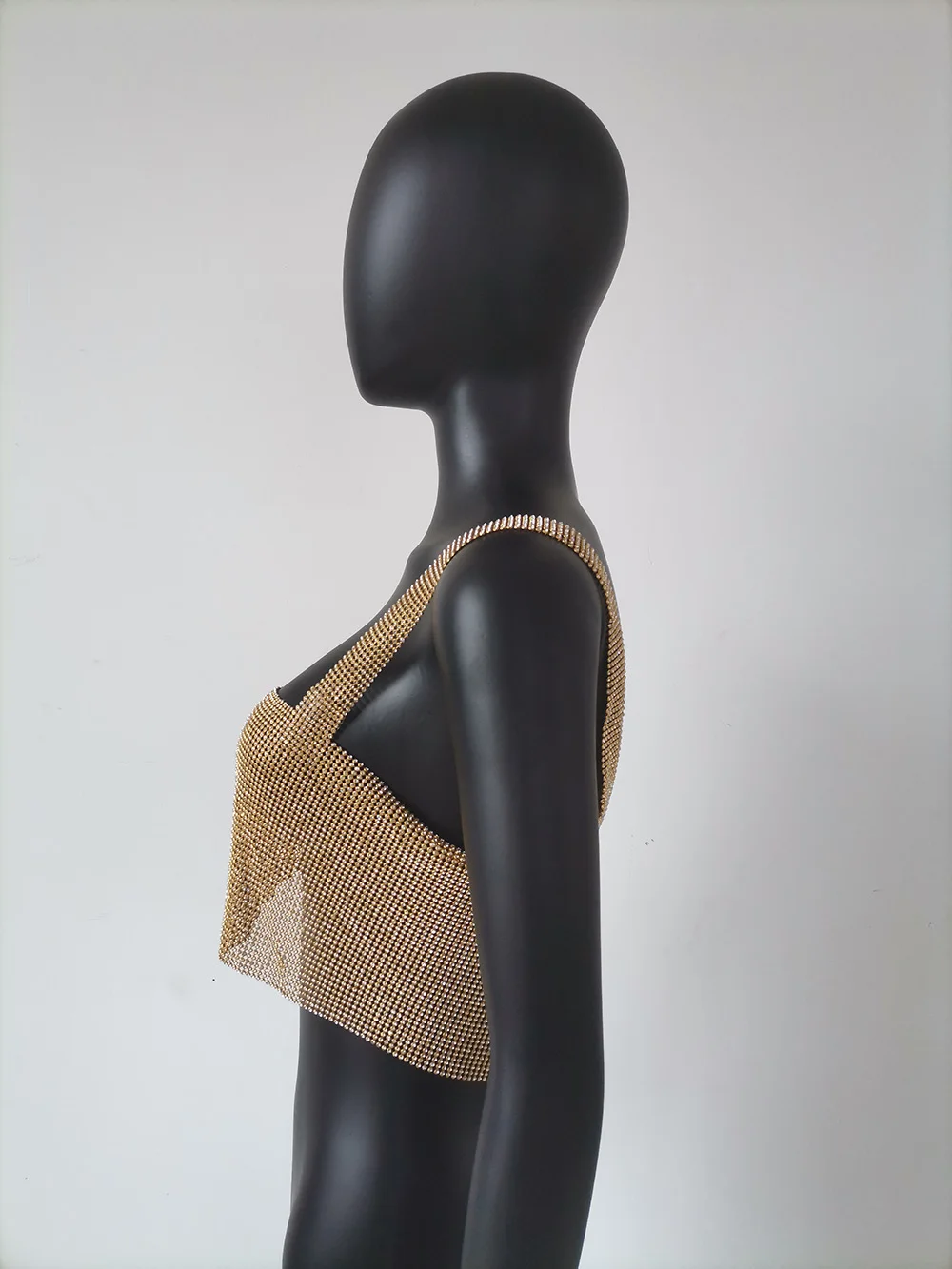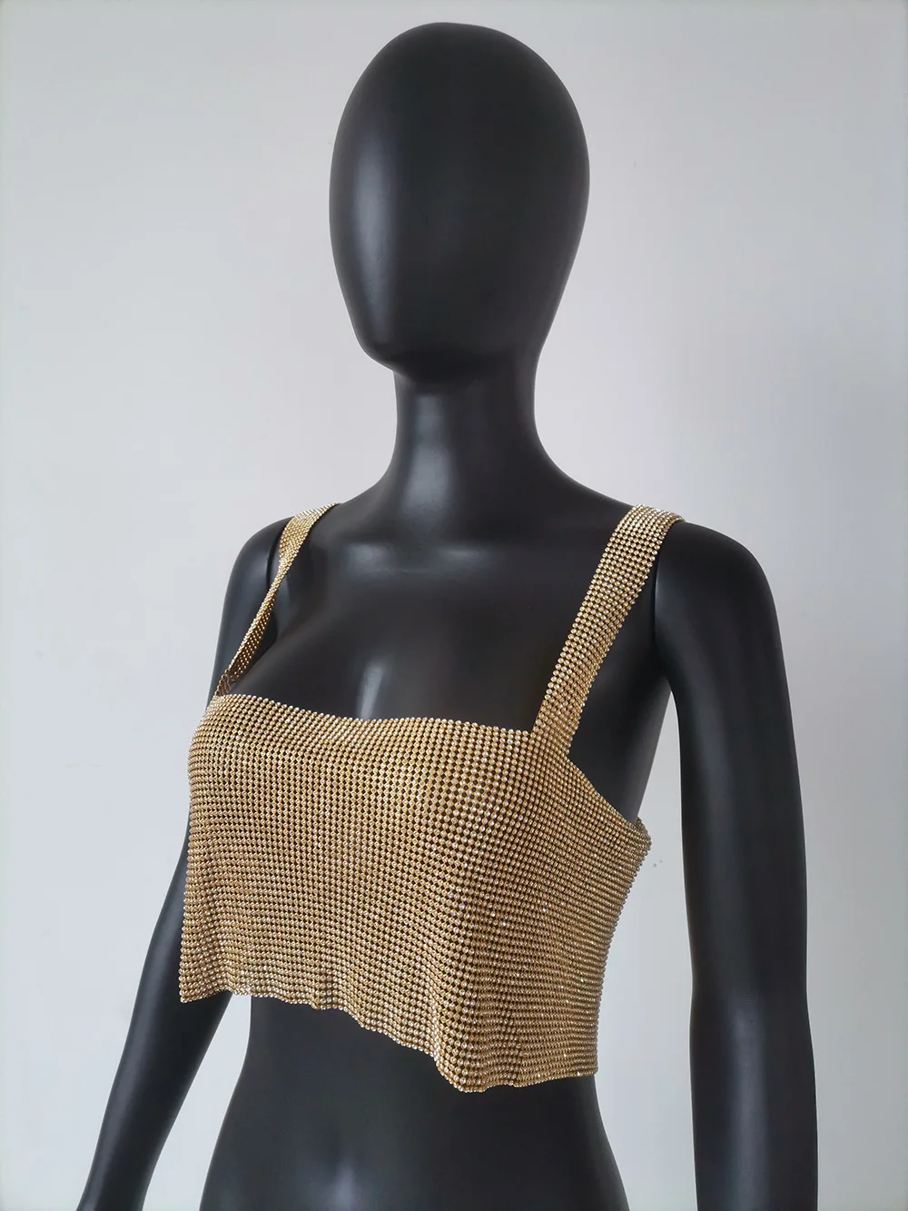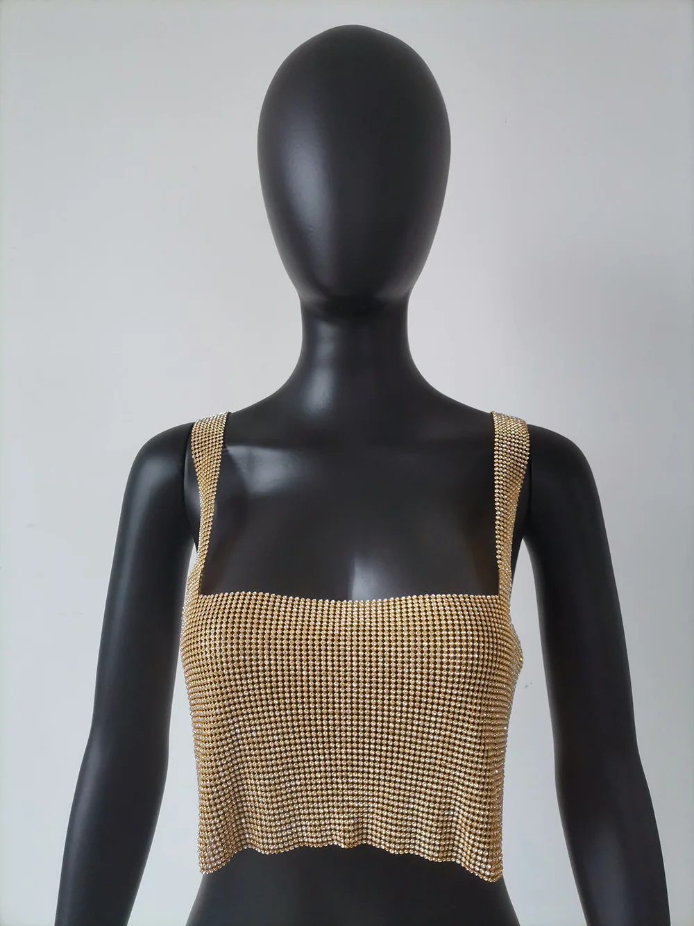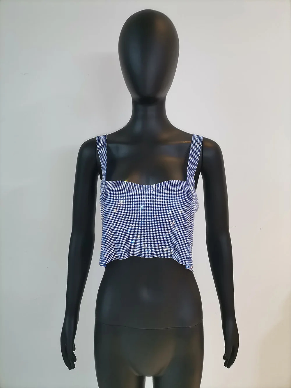 Женские майки с металлической сеткой, регулируемые, блестящие, со стразами, на бретелях, с открытой спиной