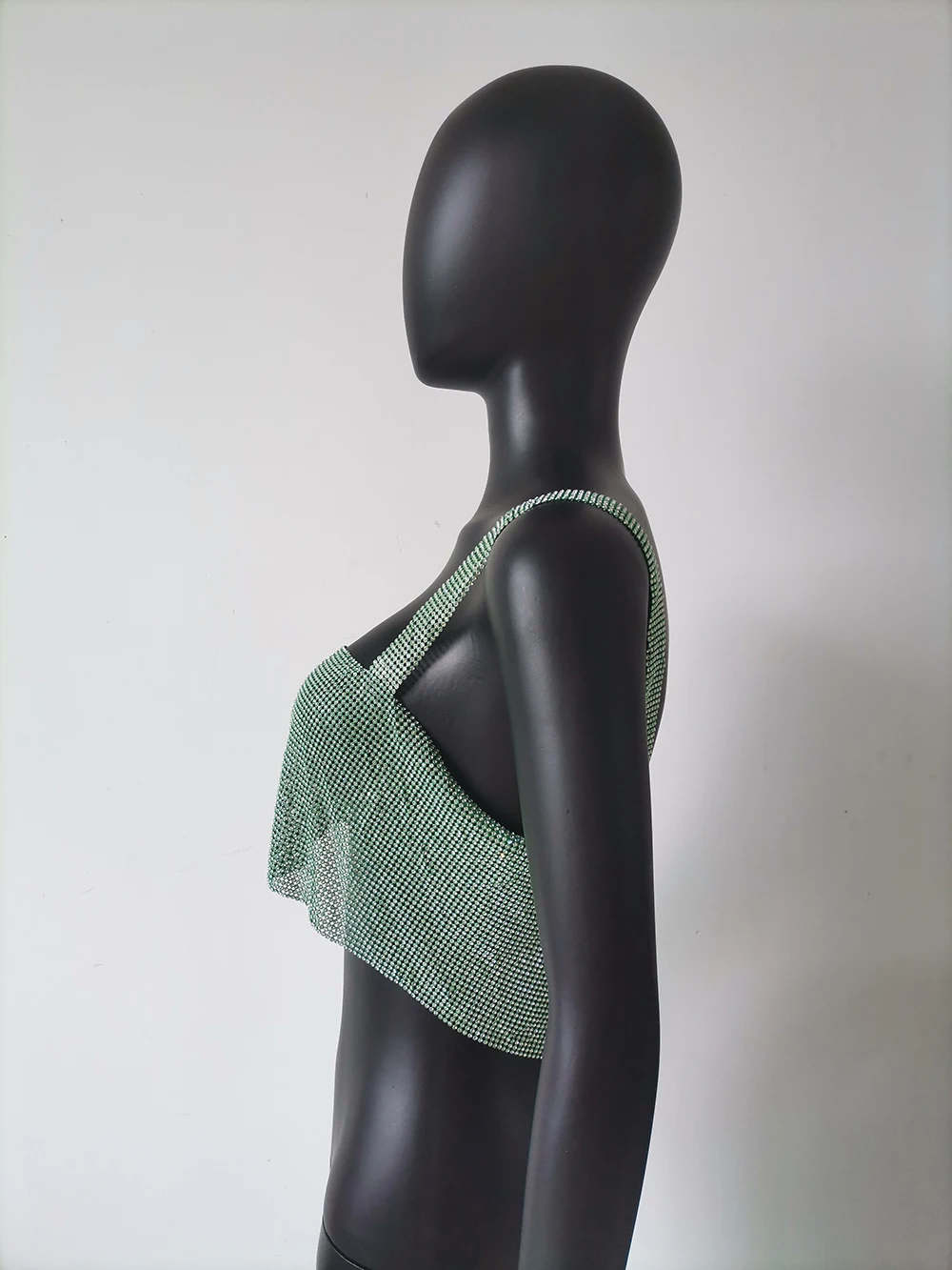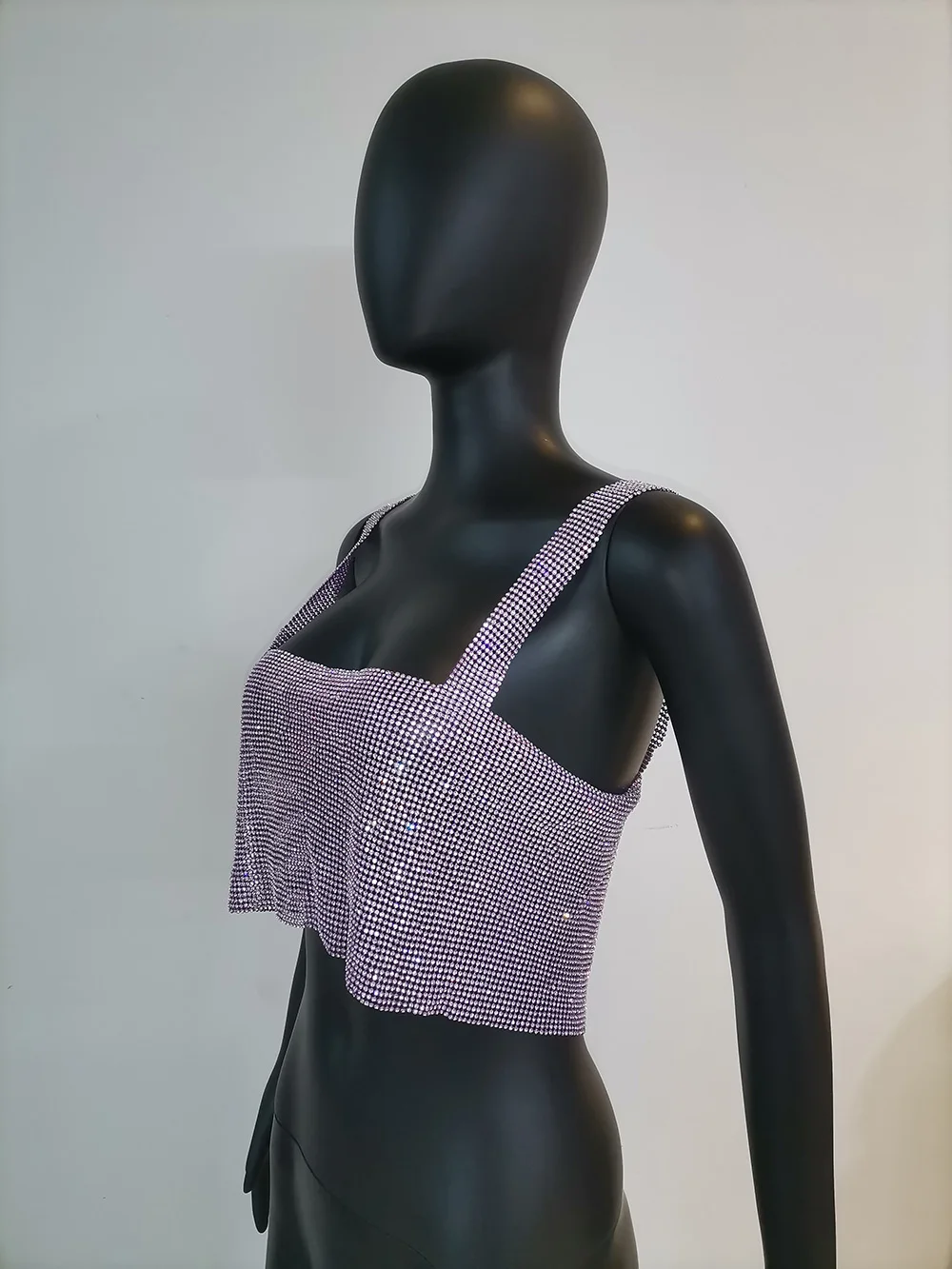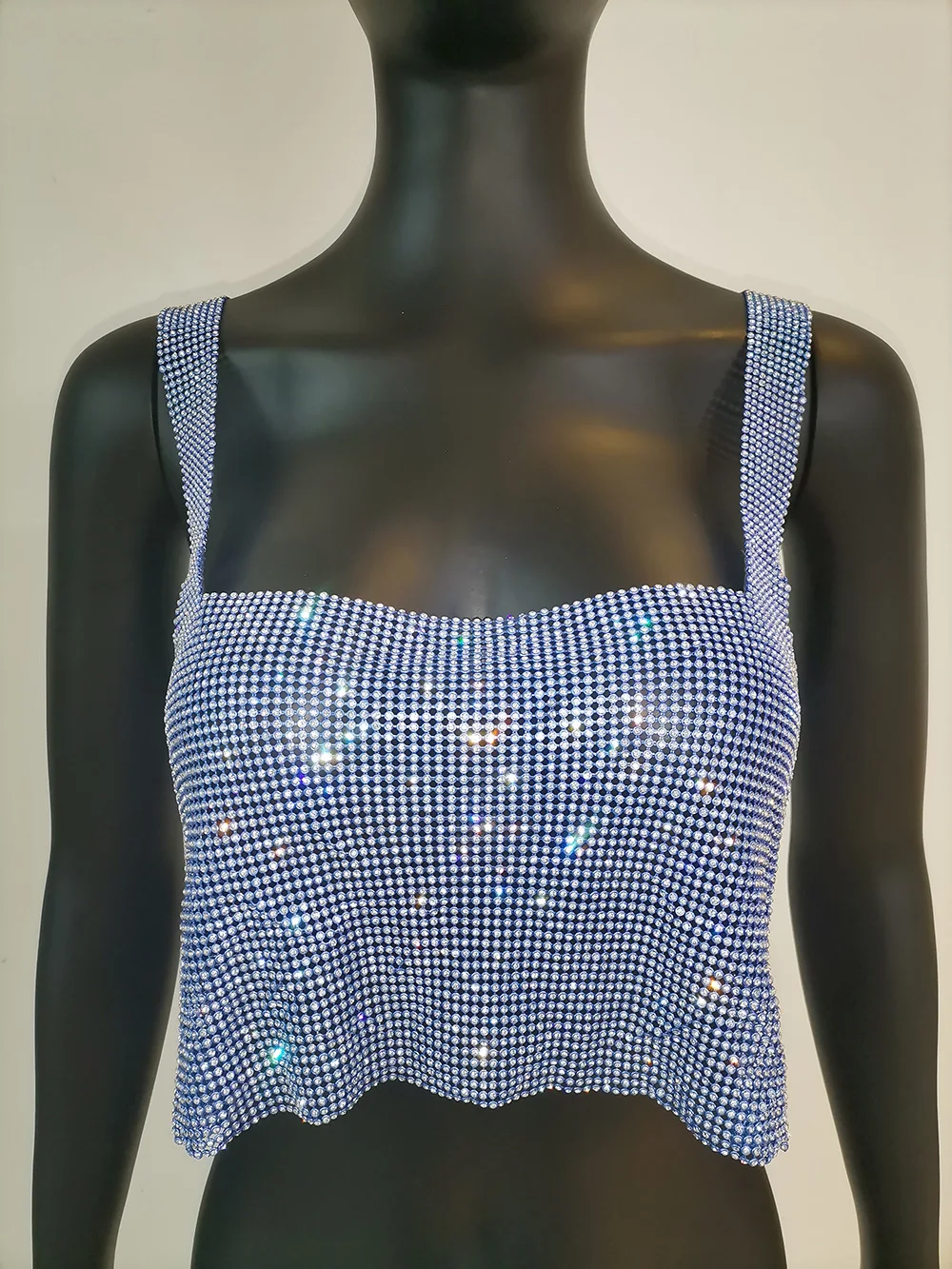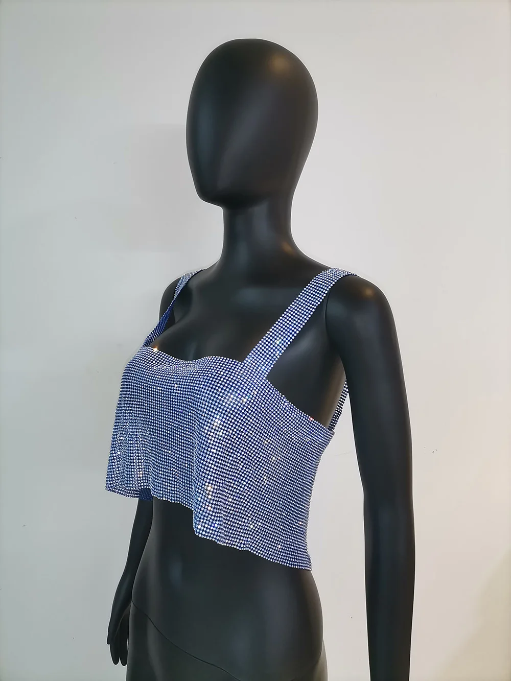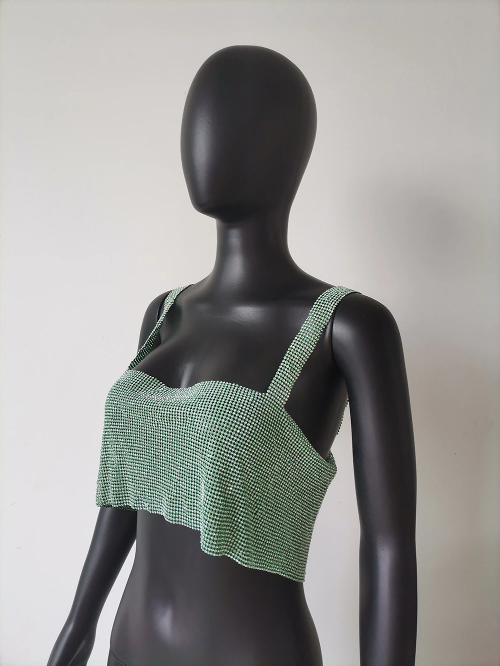 Женские майки с металлической сеткой, регулируемые, блестящие, со стразами, на бретелях, с открытой спиной