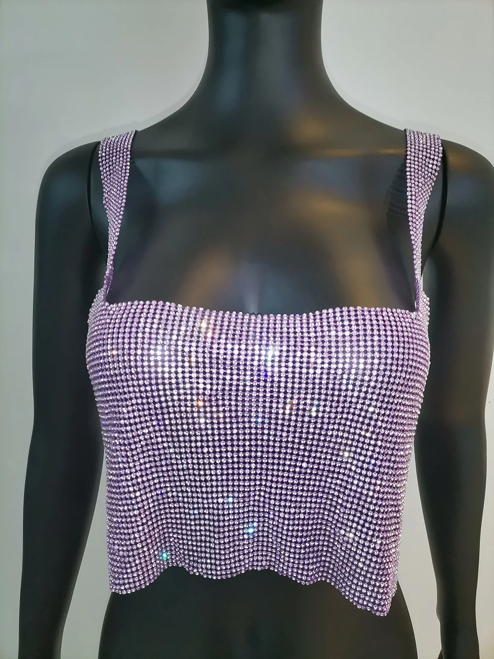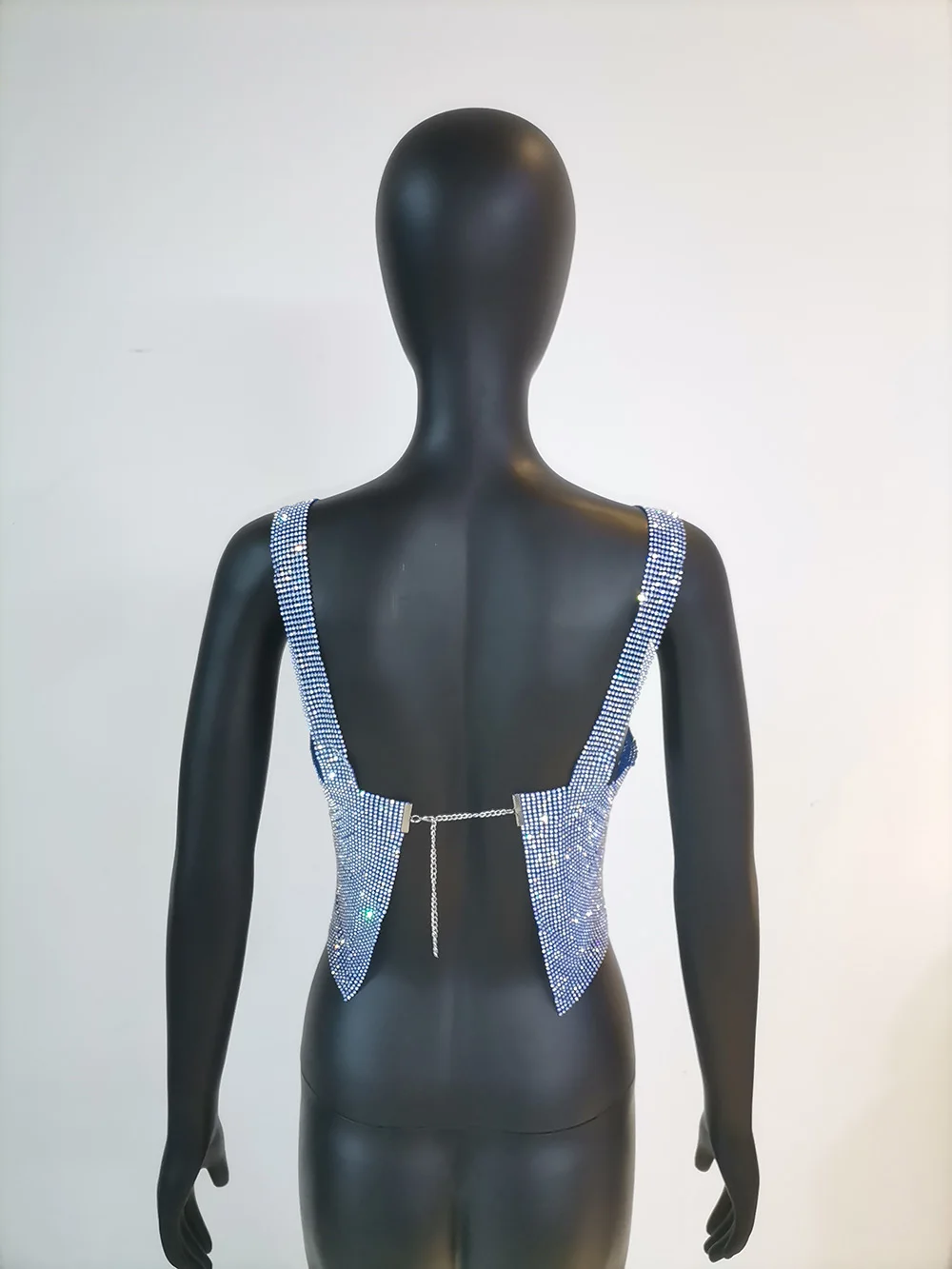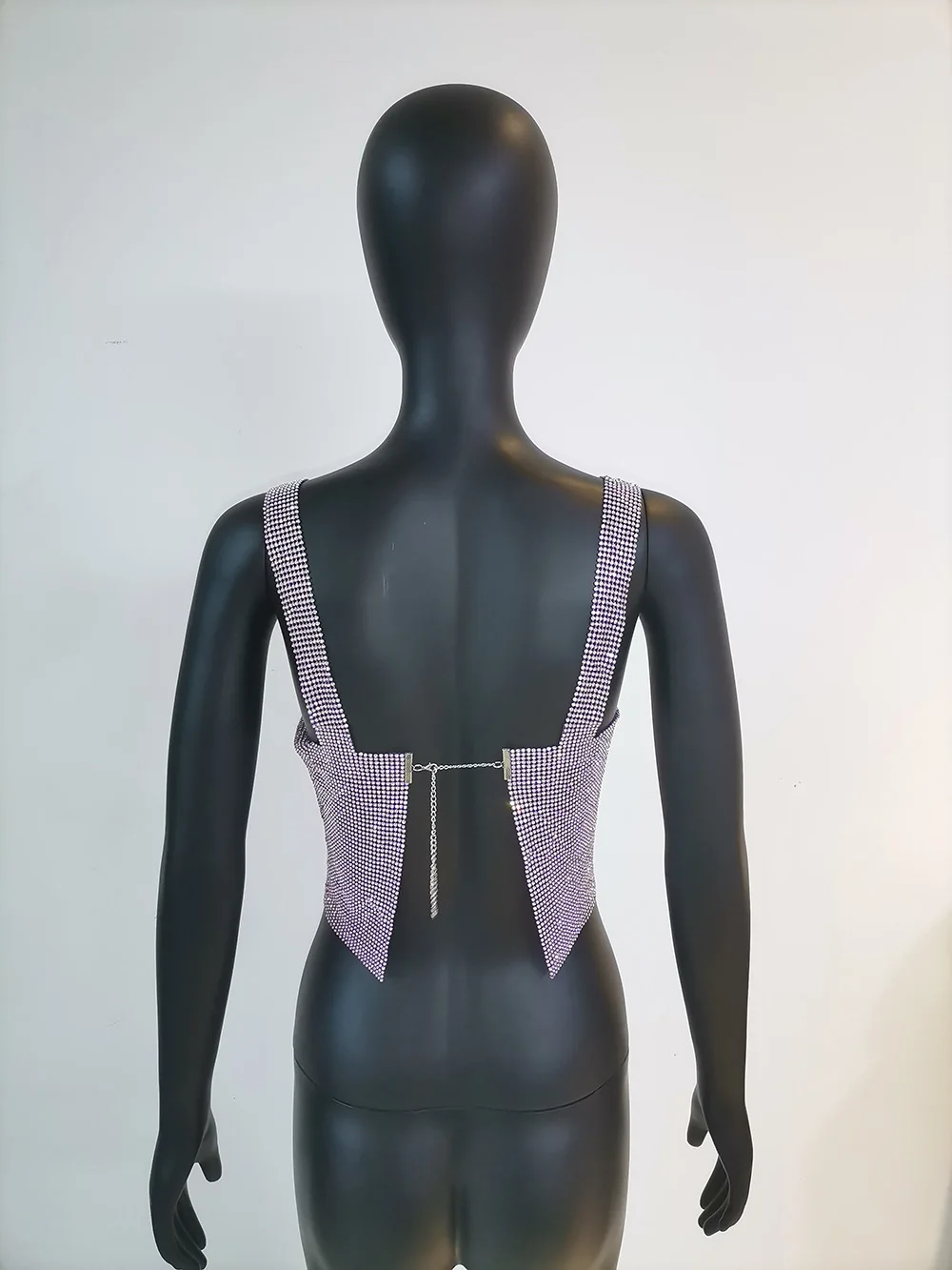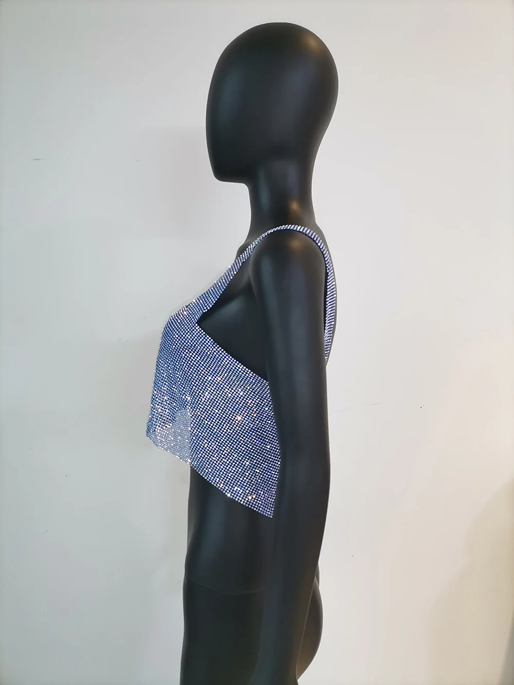 Женские майки с металлической сеткой, регулируемые, блестящие, со стразами, на бретелях, с открытой спиной