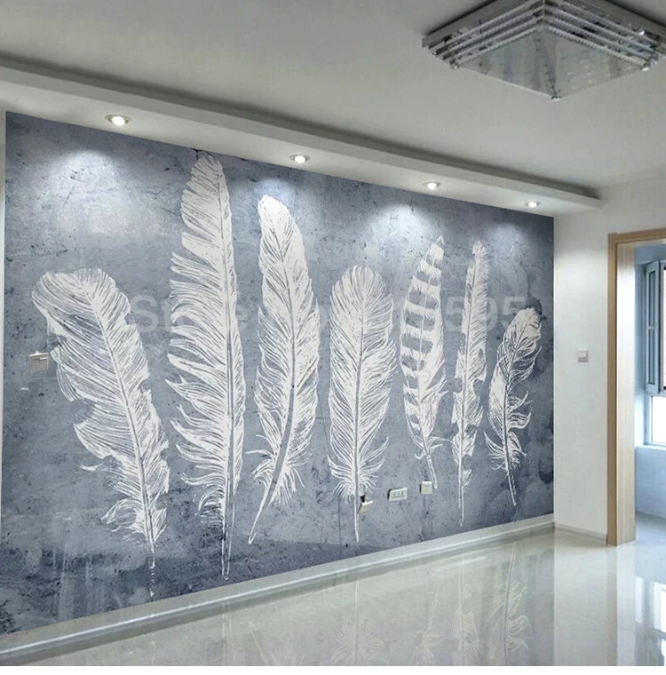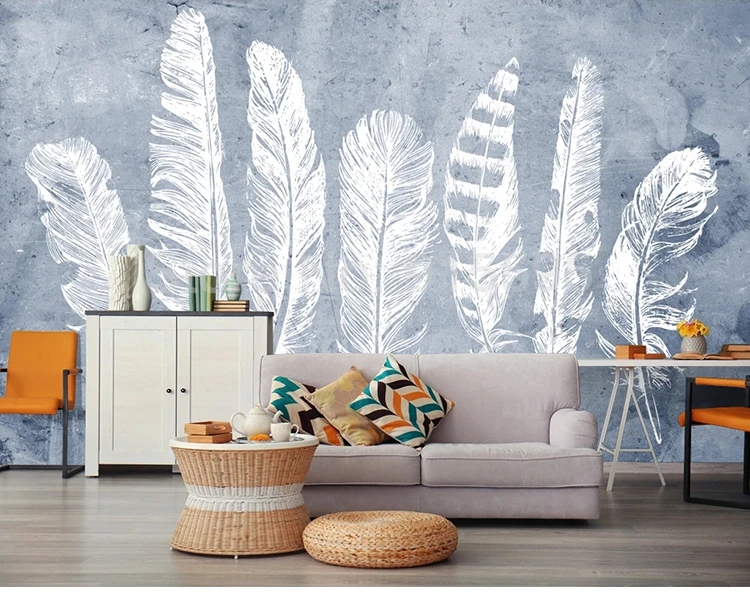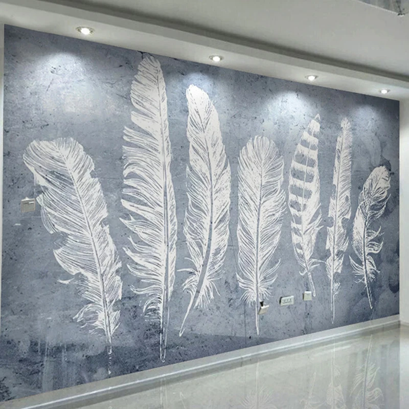 Пользовательские 3D фотообои фрески белые крылья с перьями для гост...
