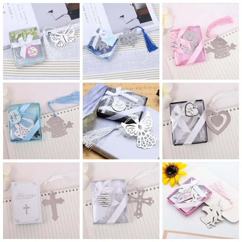 Креативный дизайн, металлическая Закладка в подарочной коробке, идеально подходит для детского душа, для новорожденных, для крестин, для первого причастия, вечеринки, подарки