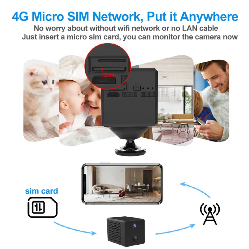 & Radic; Full HD 1080P мини-камера. & radic; Встроенный аккумулятор 2600 мАч и 2 года длительного времени работы в режиме ожидания. & Radic; 4G микро сим-карты сети питания & DV режим рекордера & radic; ПИР обнаружения движения человека и отсутствие обнаружения тревоги & radic; двусторонняя аудиосвязь в режиме реального времени и ИК-ночное видение, невидимые ИК-лампы. И radic; 8-256 ГБ TF карта и Облачное хранилище