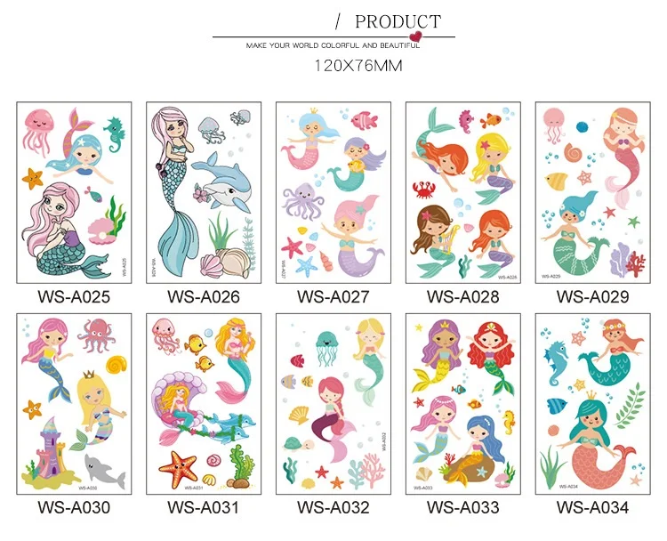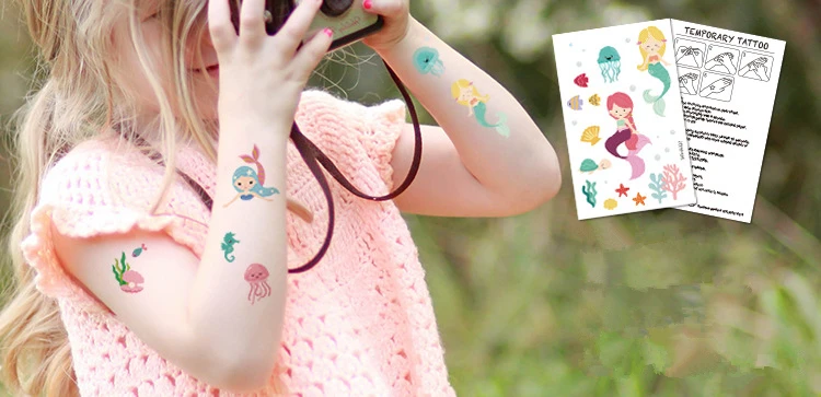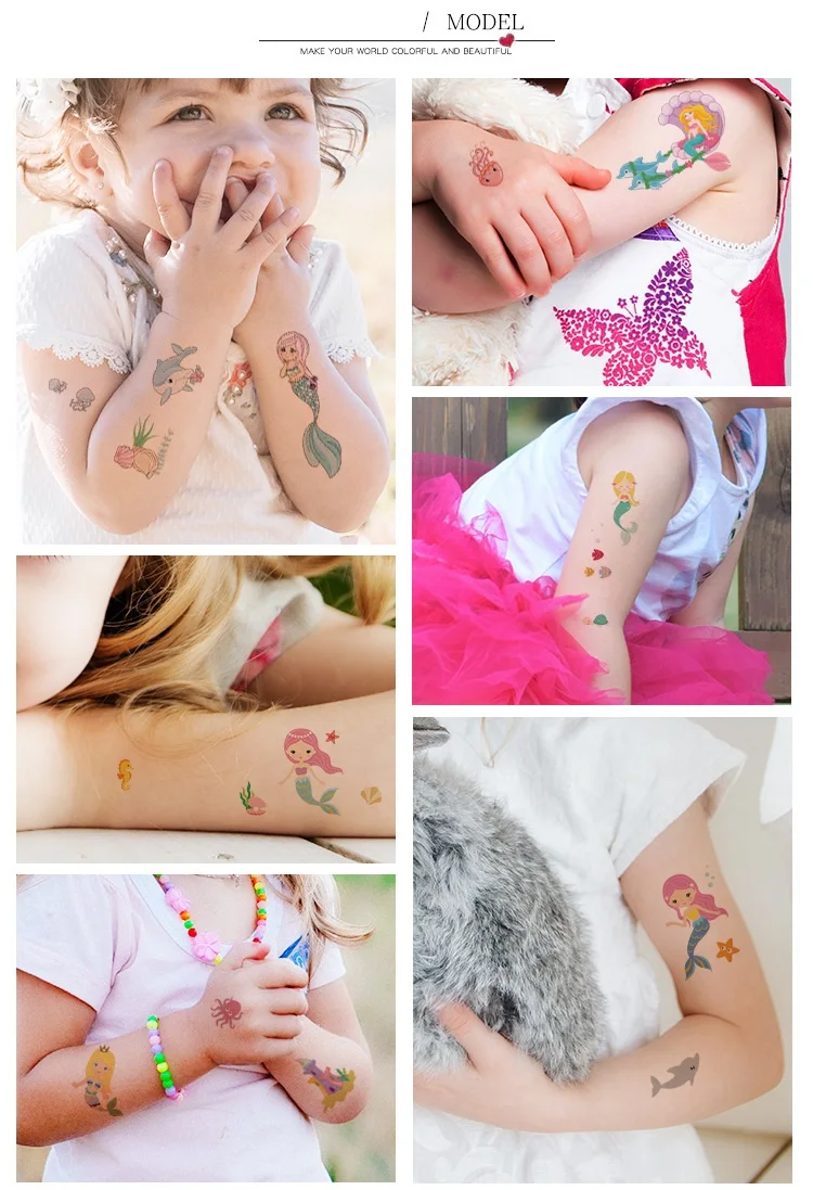Временные татуировки для вечерние, 10 видов, Мультяшные, Русалка, наклейки для тела, милые, детские, одноразовые, tatouage temporaire