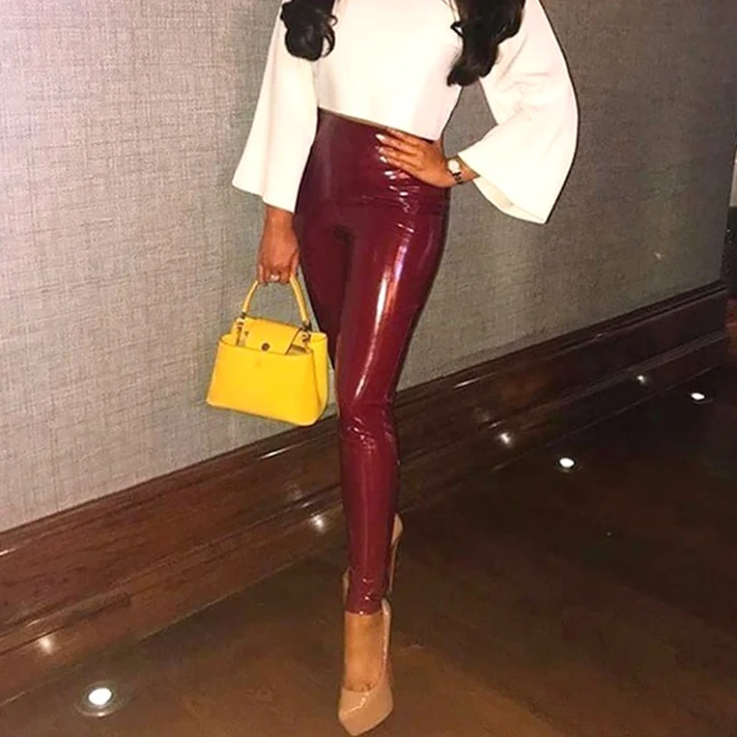 Облегающие Женские кожаные брюки; Сезон осень-зима; Однотонные Яркие Кожаные Брюки; Женские облегающие повседневные уличные брюки в европейском стиле