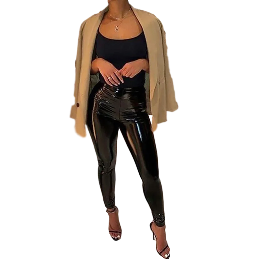 Осенне-зимние женские кожаные брюки, яркие эластичные брюки из ПУ, женская готическая облегающая уличная одежда, модная женская одежда