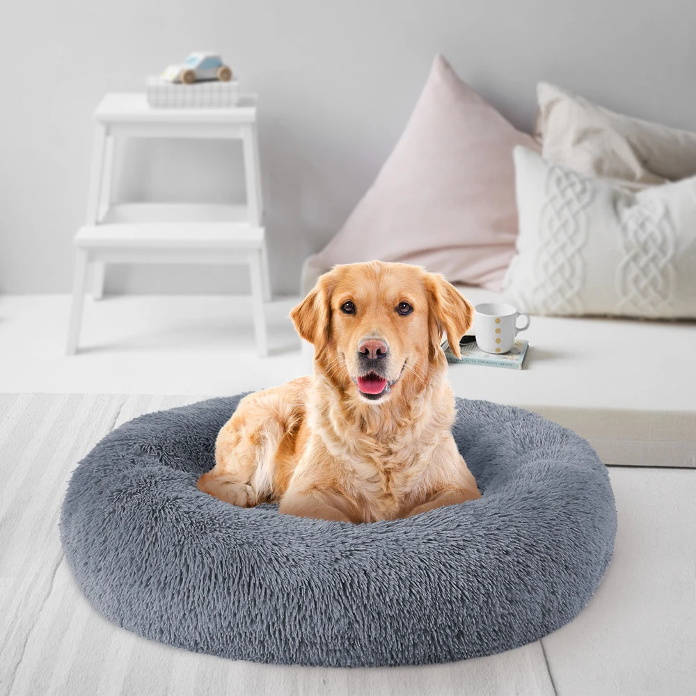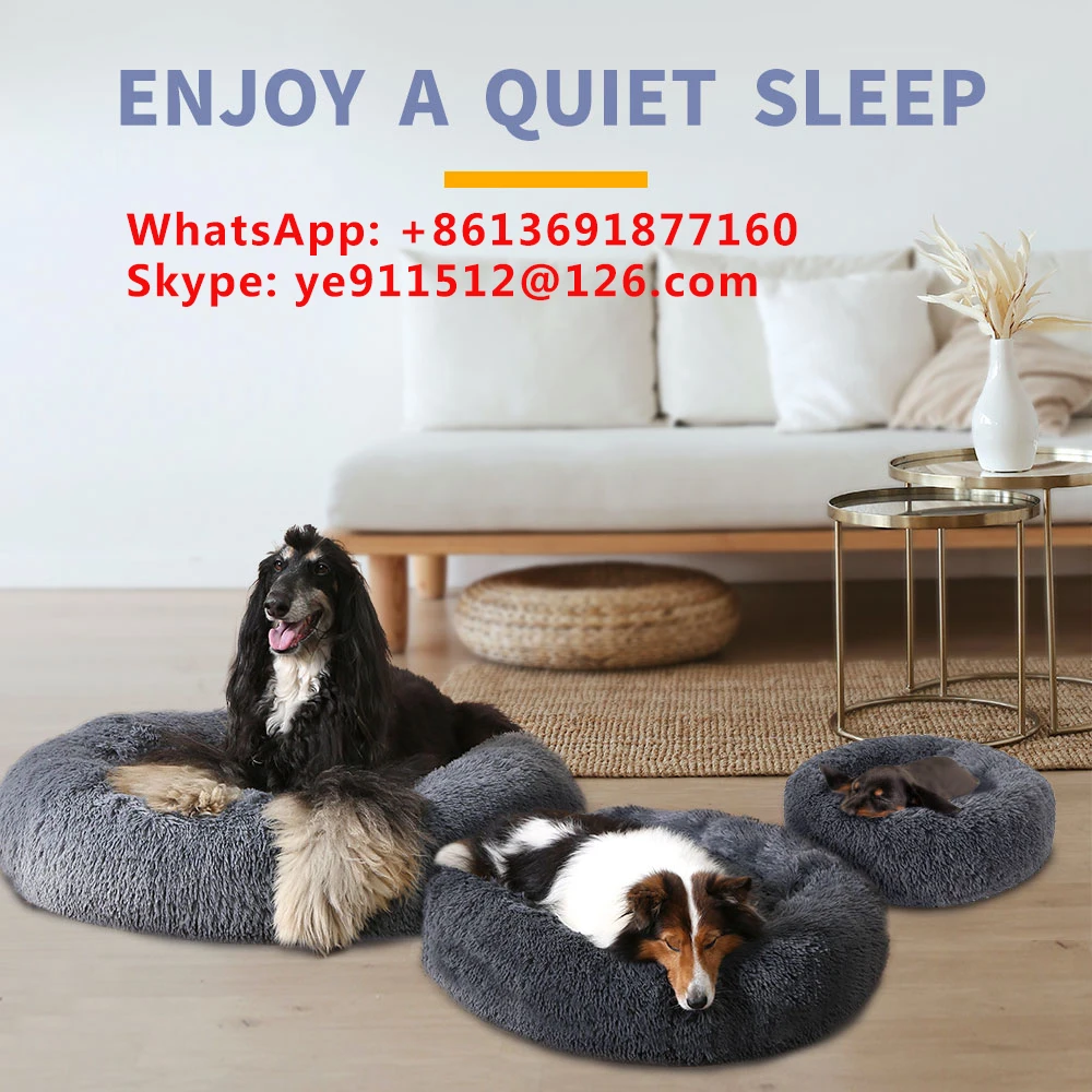 Круглые длинные плюшевые кровати для больших собак, зимние товары для домашних животных, подушка, очень мягкие, пушистые, удобные коврики для кошек, аксессуары