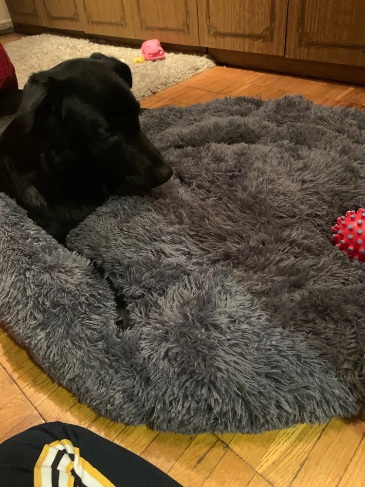 Кровать для собак пришла в течение 3 дней. Выглядит красиво. Пушистый. Не могу сказать, нравится ли наша собака.