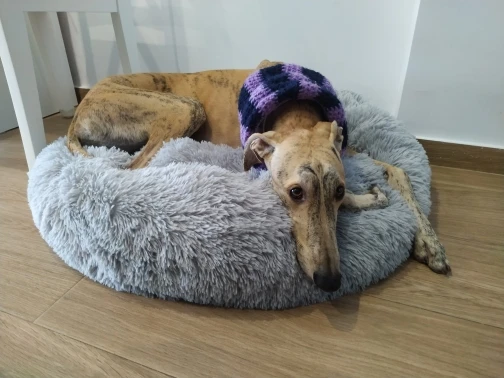 Es perfecta esta camita para mi perra, es del tamaño que elegí, super suave de pelito, abombada como una almohada, me puto encanta.