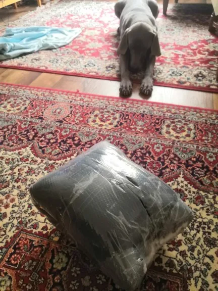 Через доставку epacket в Татарстан пришло за 1 месяц, трек по России отслуживался. Упаковано было с помощью вакуума, но при распаковке лежанка сразу приняла нужную форму. Собака немного испугалась эту новую лежанку, но потом привыкла.