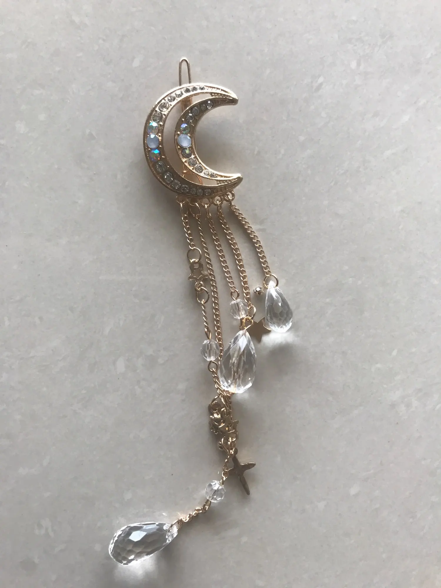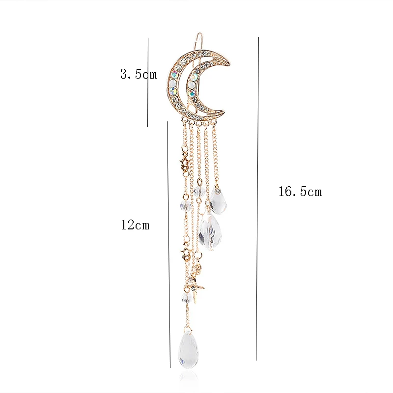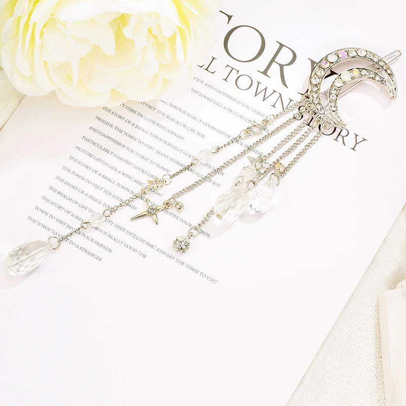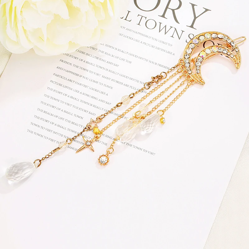 Заколка для волос с бусинами женская, Элегантная Модная Длинная цепочка-кисточка с кристаллами в форме Луны, стразы, аксессуары для волос, бижутерия