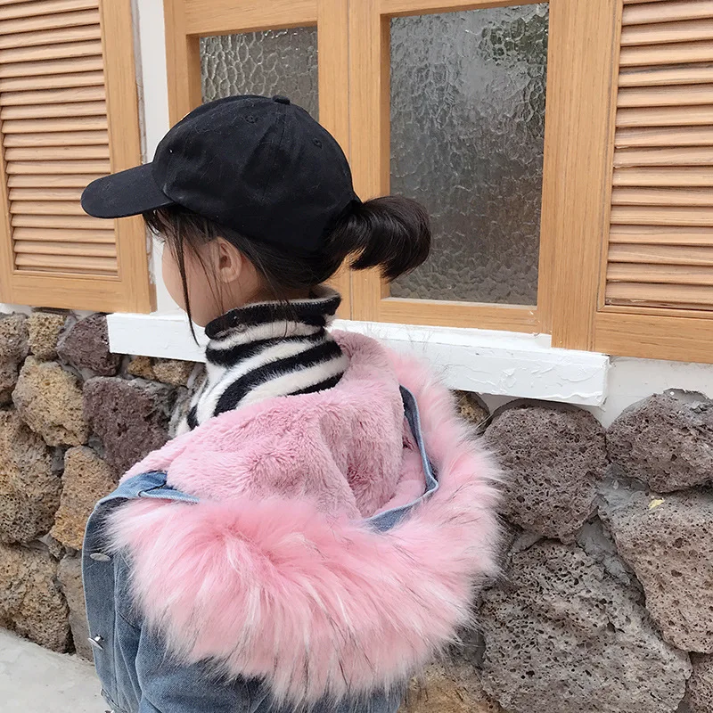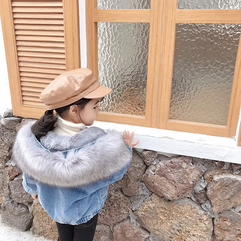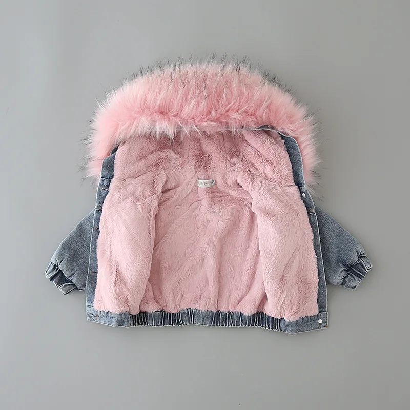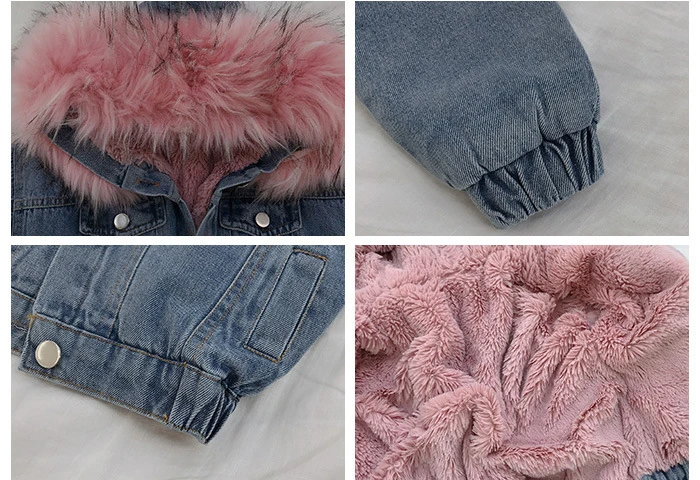 Детская куртка розовая ветровка с меховым воротником для девочек, утепленное хлопковое зимнее пальто Джинсовая куртка для мальчика, костюм От 4 до 12 лет