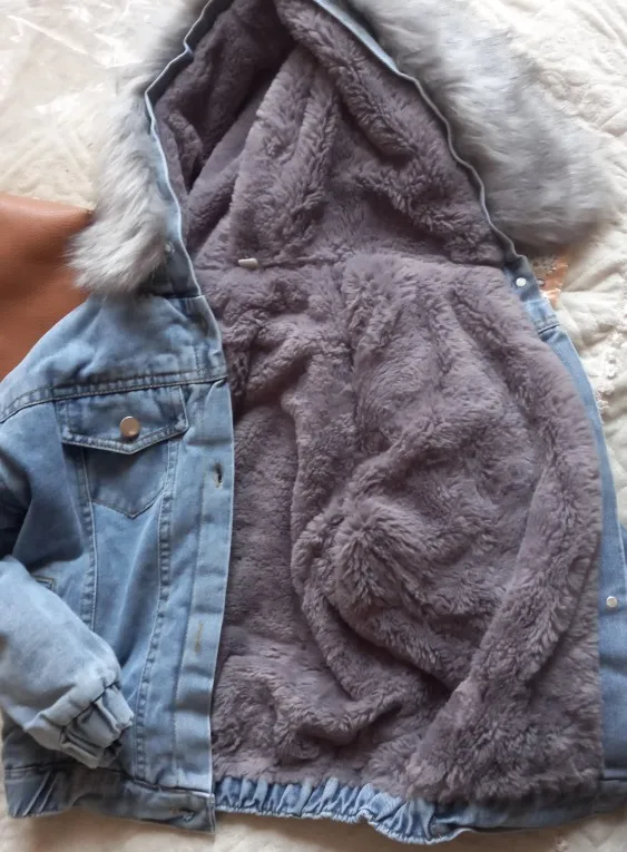 Джинсовая куртка зимняя теплая джинсовая куртка с меховым капюшоном...