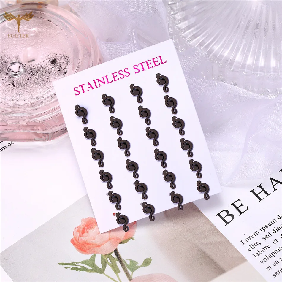 Материал: нержавеющая стальВысокое качество на 100% абсолютно новыйЦвет: золотистые \ черные \ цветные \ серебряные серьгиПреимущество: не вызывает аллергии, не выцветаетКомплект: 12 пар/лот