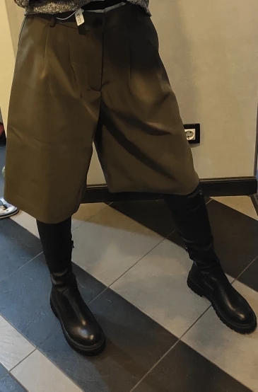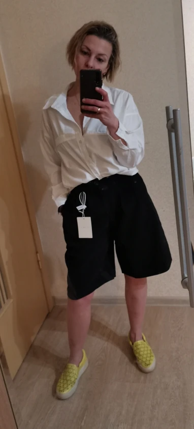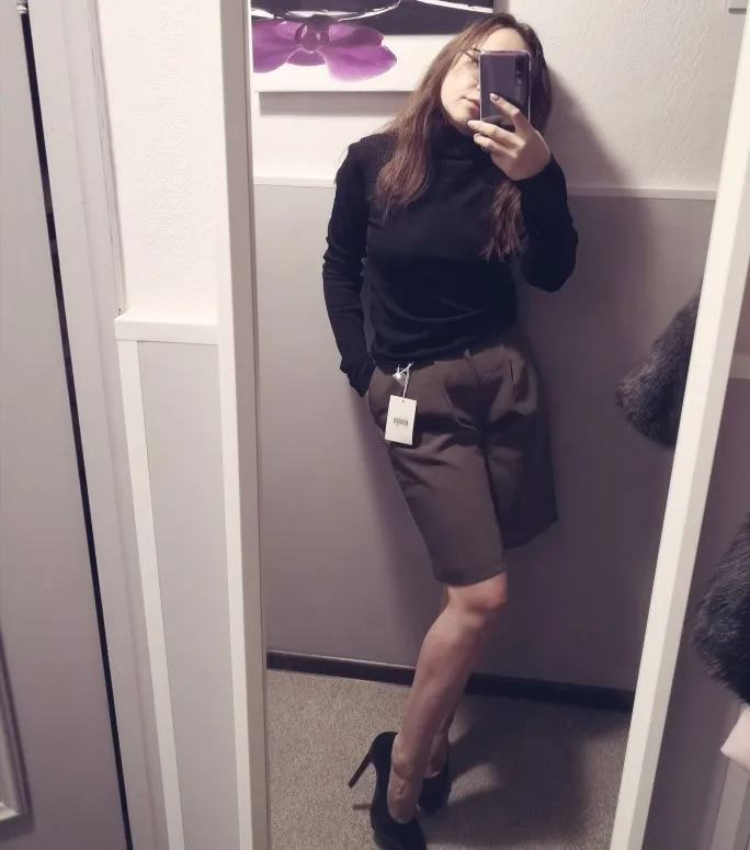 Шорты смотрятся дорого, очень красивый оттенок, ткань тяжёлая, без блеска и визуально похожа на костюмную. На параметры 75-95 подошёл размер L, но в талии размер впритык. Лучше сядут на параметры меньше. А вот в бёдрах есть еще запас (3-5 см). Доставка за пару недель. Шортами я осталась довольна. Из недостатков только нитки, которые я срезал за полторы минуты.