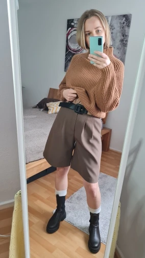 Бермуды выполнены из плотной костюмной ткани, все строчки ровные, есть подкладка. Не липнут и не электризуются. Очень стильная вещь в гардероб, которая не носится всеми массово. На мои параметры: рост 165 см ; объём талии; 68 см; объём бёдер 98 см подошёл размер L. Больше обзоров в моем Инстаграм: @masha_sokk