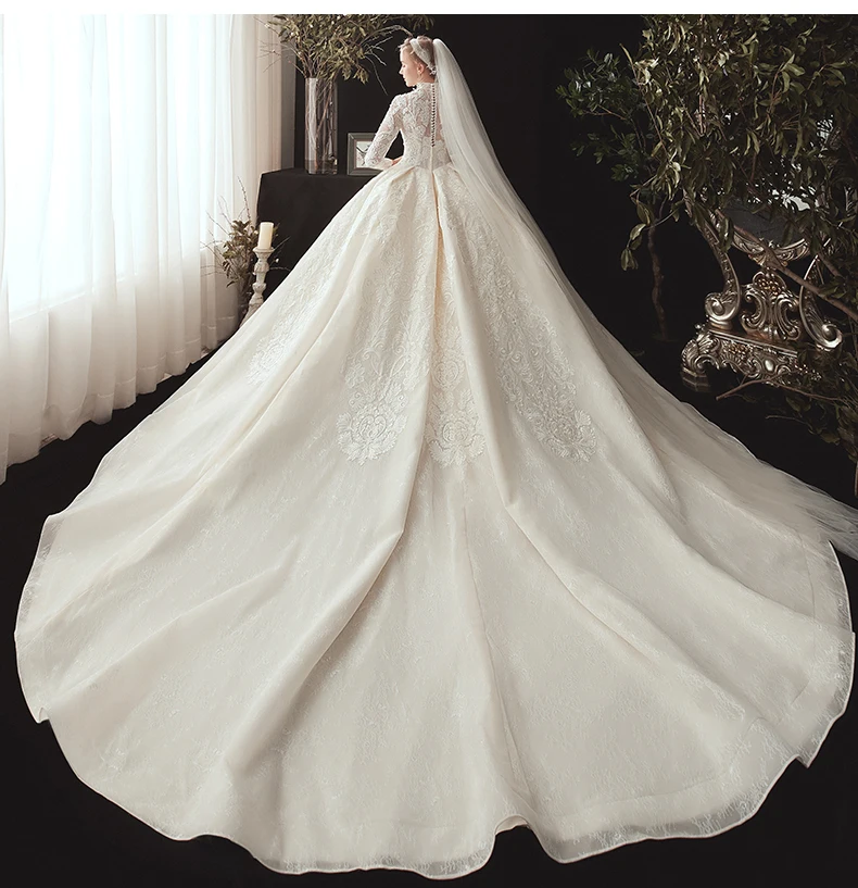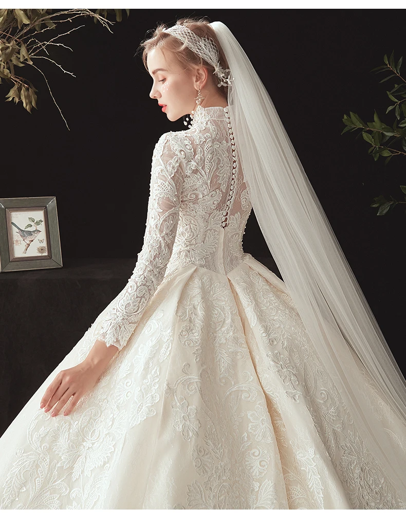Элегантное женское бальное платье с цветами из стразов, свадебные платья, новое мусульманское кружевное платье с длинным рукавом и аппликацией для невесты