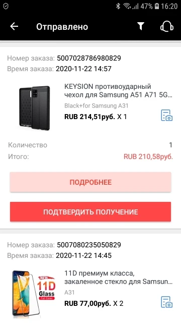 Страна: RU Color: A51 Доставка: Cainiao Super Economy 26.11.2020