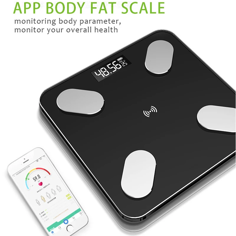 Электронные весы, цифровой прибор для измерения массы тела и жира, с ЖК-дисплеем и закаленным стеклом, Bluetooth