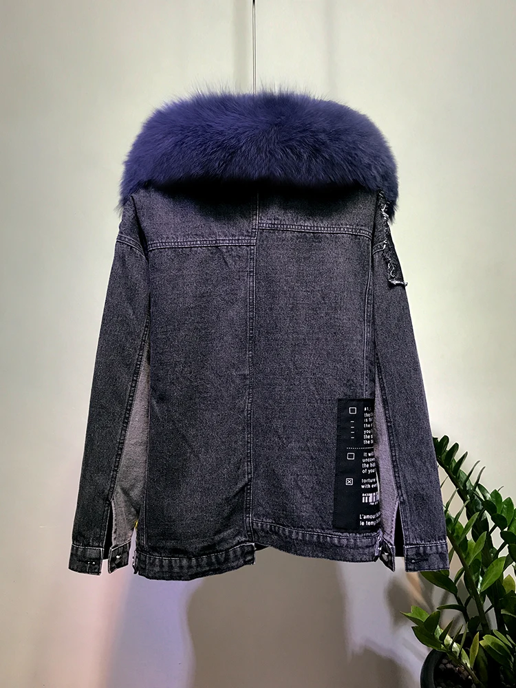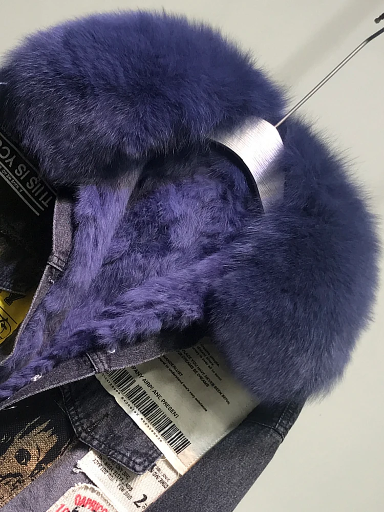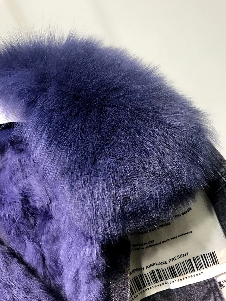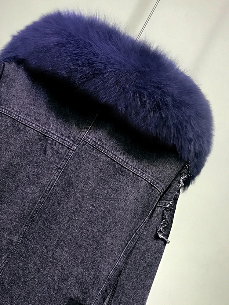 Это пальто с воротником из натурального Лисьего меха отличного качества Пушистая подкладка из натурального кроличьего меха делает его более модным и теплым. Если вам нравятся эти джинсовые пальто из настоящего меха, пожалуйста, сделайте заказ в ближайшее время, это станет отличным подарком для себя в холодную зиму.