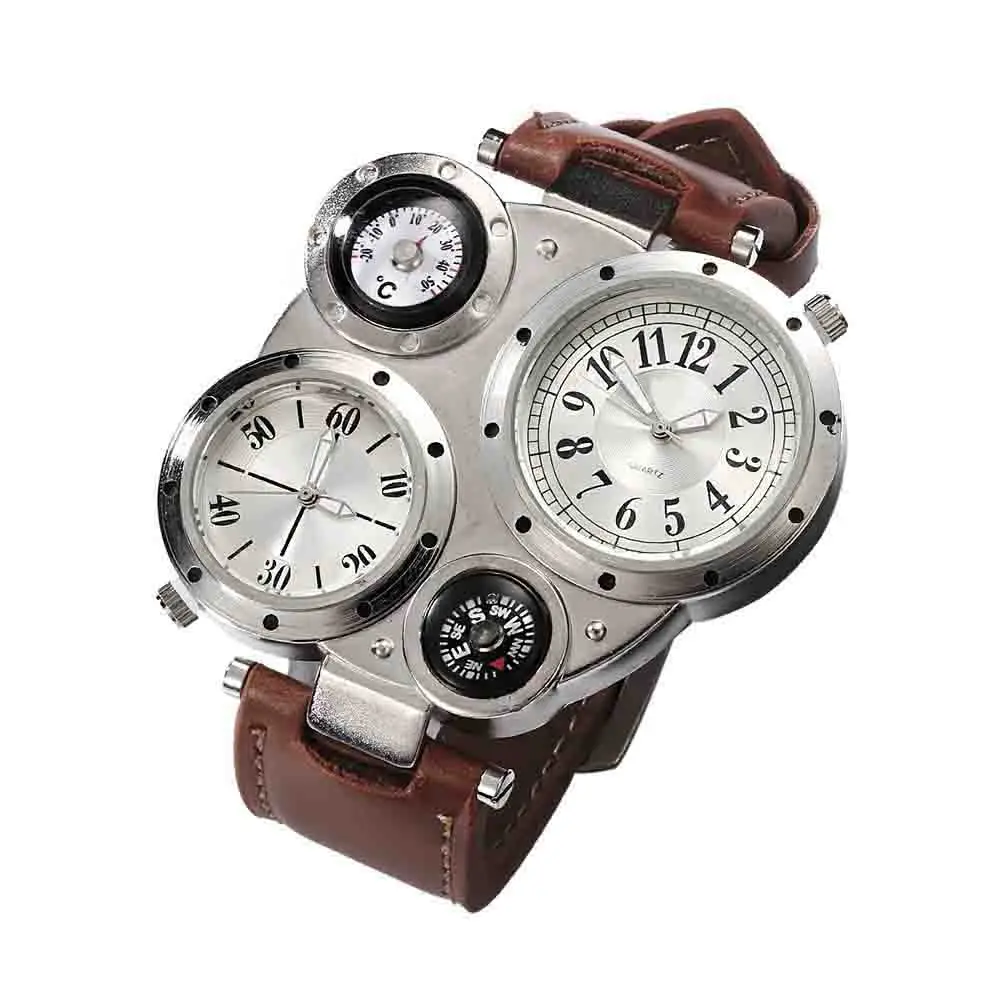 Часы мужские кварцевые с двойным механизмом, креативные цифровые спортивные Водонепроницаемые уличные, термометр с компасом, с 4 циферблатами