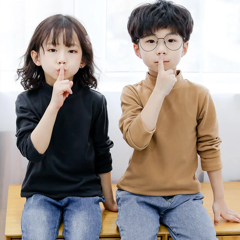 Утепленные рубашки с длинным рукавом для мальчиков и девочек, однотонные Детские топы для детей 2-14 лет, осенне-зимняя верхняя одежда