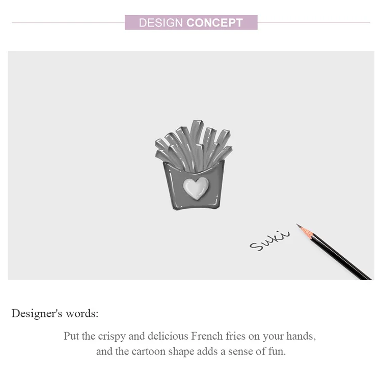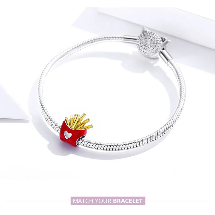 Металлические бусины из серебра 925 пробы с изображением картошки фри