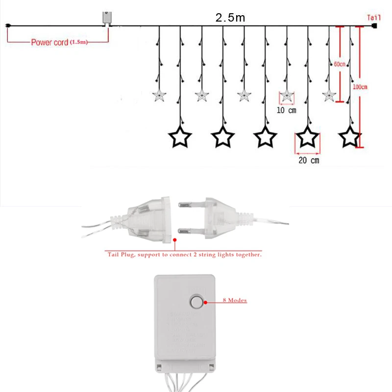 Рождественская светодиодная гирлянда-занавеска со звездами, 2,5 м, 220 В, Рождественская гирлянда, гирлянда для дома, свадьбы, вечеринки, праздника, Dec