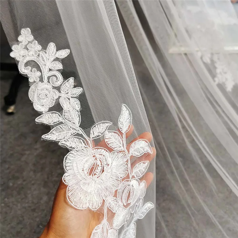 Высококачественная свадебная фата длиной 3 метра, Кружевная апплика...