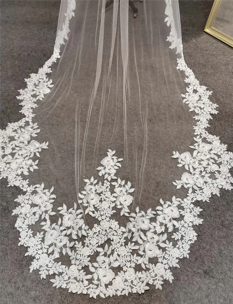 Новая кружевная Длинная свадебная вуаль, однослойная свадебная вуал...