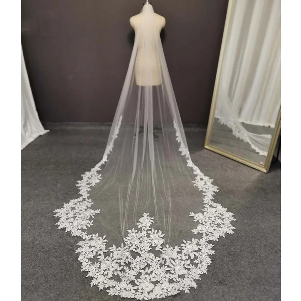 Роскошный длинный кружевной вуаль с расческой, 4 метра