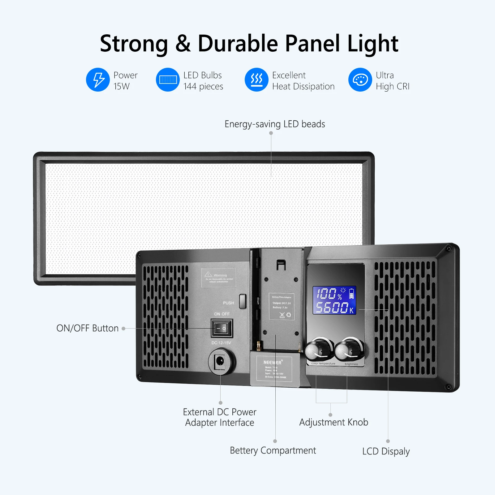 144 шт., ультратонкие Двухцветные светодиодные лампы Neewer, 2600 мАч