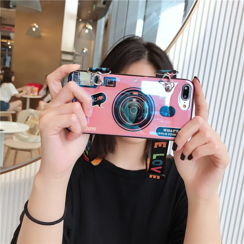 Для OPPO A5 2020/A9 2020 3D Ретро стиль камеры Мягкий чехол из ТПУ чехол с ремешком и наручным ремешком для OPPO A5 2020/A9 2020