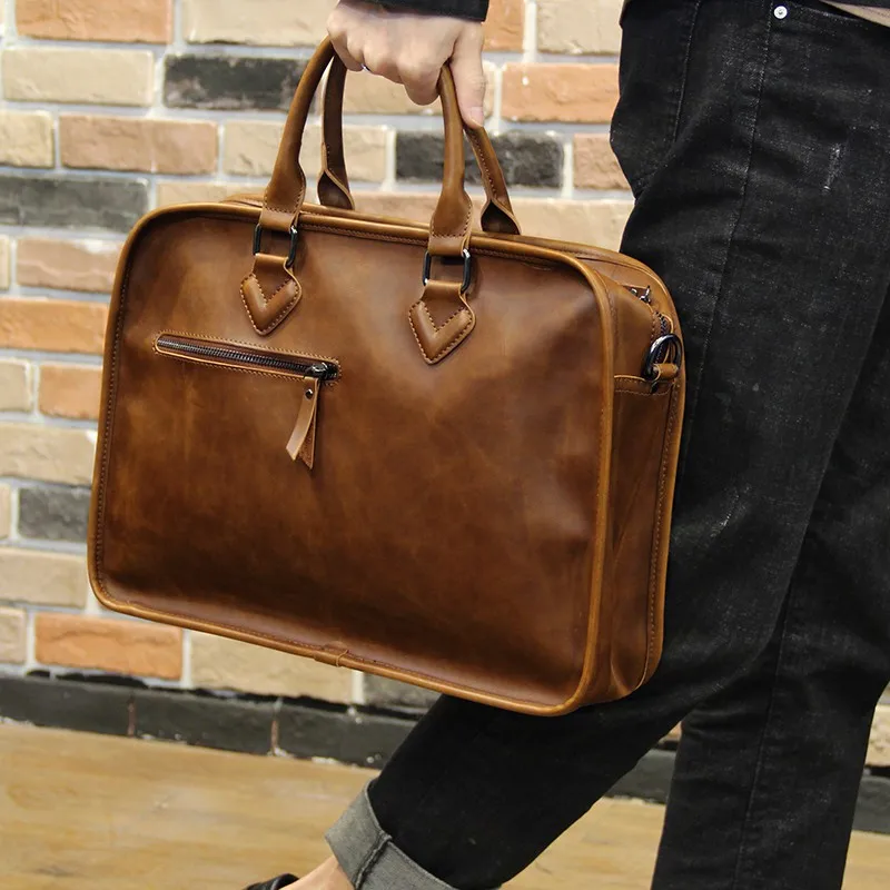 Для мужчин Винтаж Портфели Сумки из натуральной кожи искусственная кожа Crazy Horse 13 дюймов большой сумки для ноутбуков Бизнес коричневая сумка через плечо, мужская сумка для ноутбука